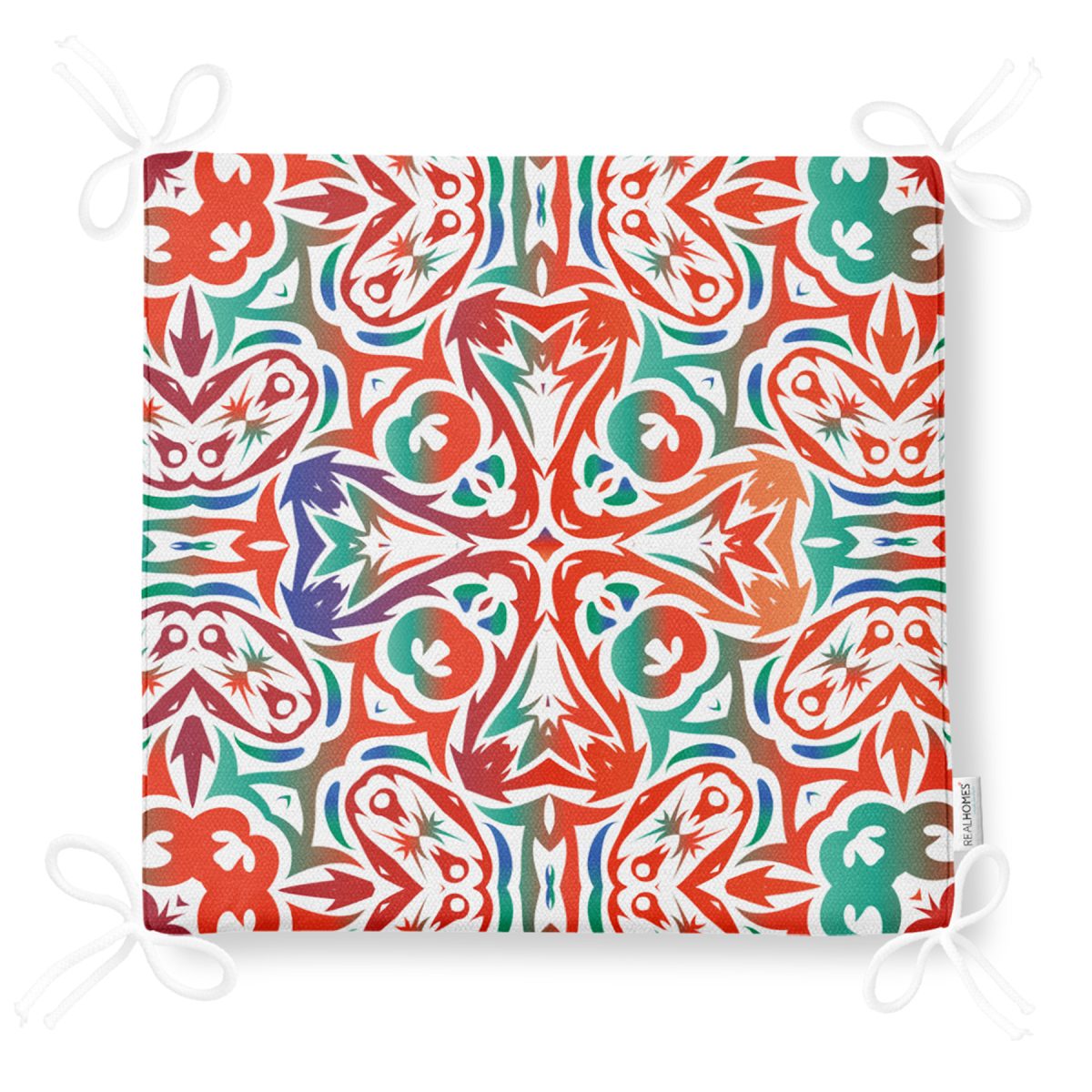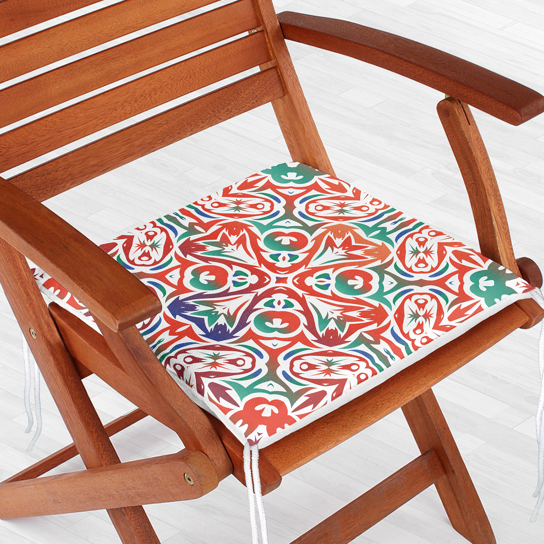 Beyaz Zemin Üzerinde Çini Desenli Dijital Baskılı Modern Fermuarlı Sandalye Minderi
