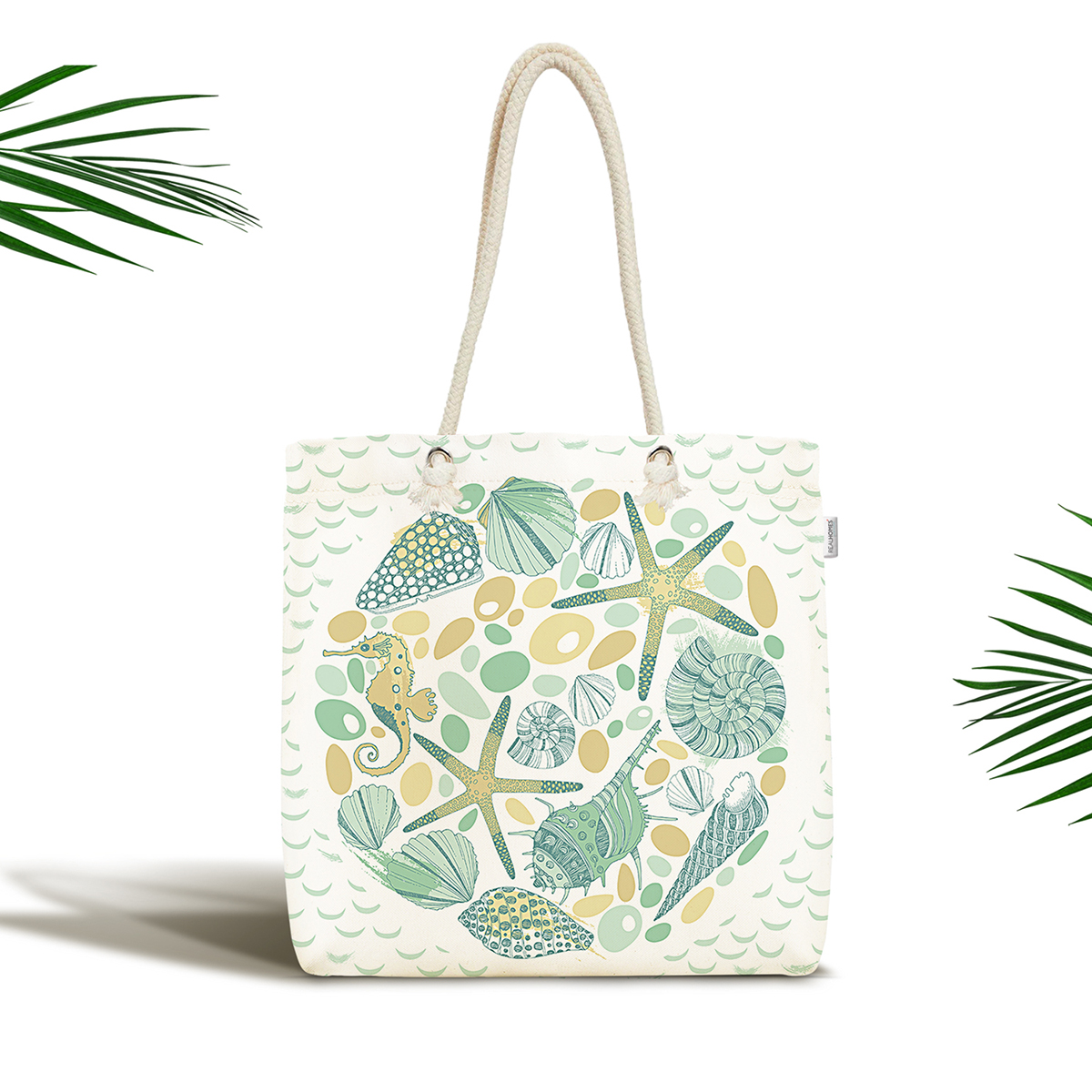 Beyaz Zemin Üzerinde Deniz Yıldızı Desenli Dijital Baskılı Kumaş Plaj Çantası Realhomes