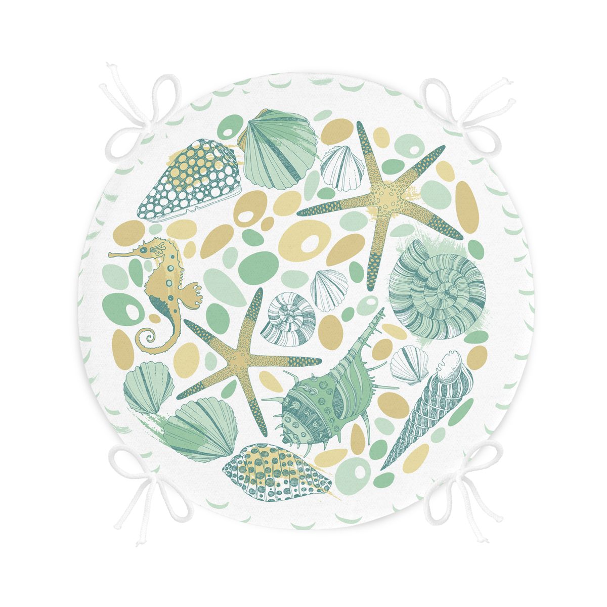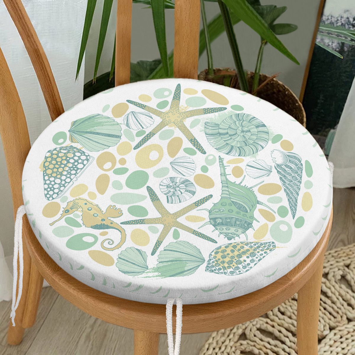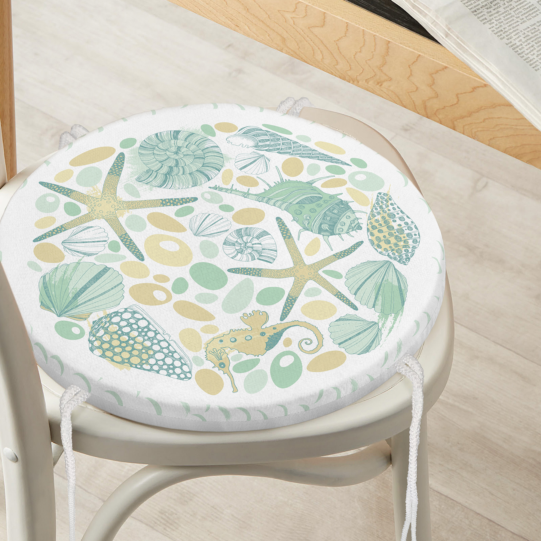 Beyaz Zemin Üzerinde Deniz Yıldızı Desenli Dijital Baskılı Modern Yuvarlak Fermuarlı Sandalye Minderi