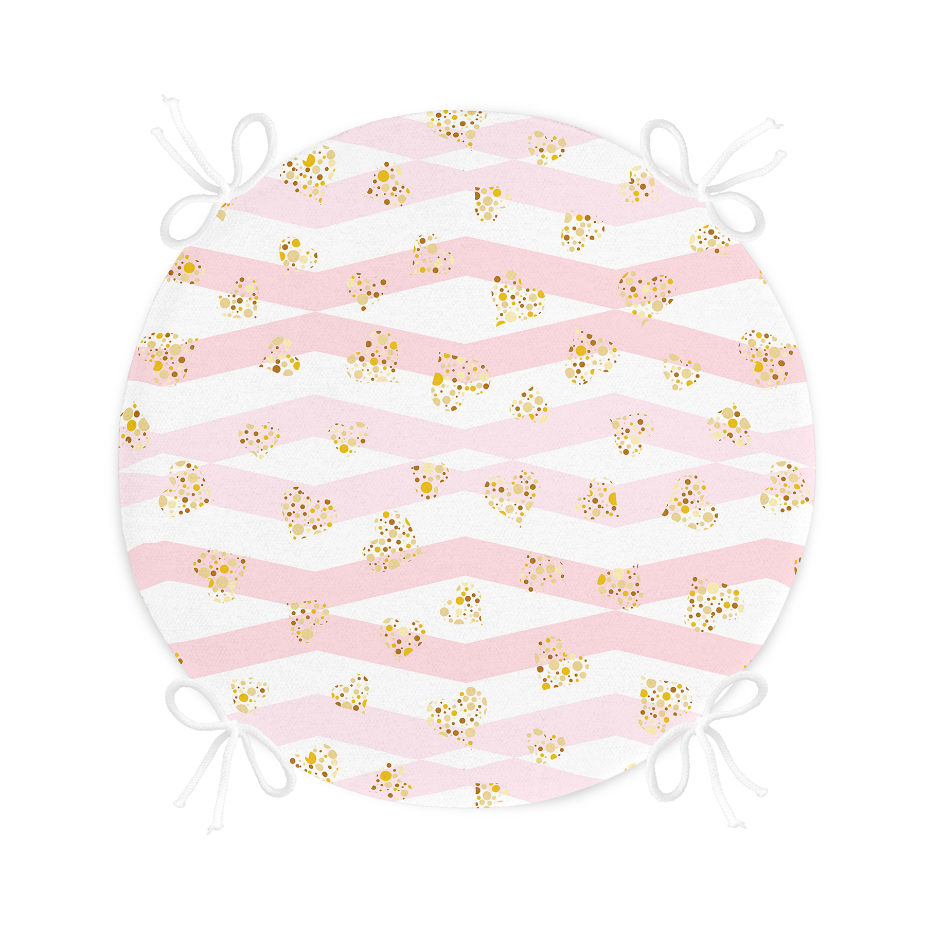 Beyaz Zemin Üzerinde Gold Detaylı Kalp Desenli Dijital Baskılı Modern Yuvarlak Fermuarlı Sandalye Minderi Realhomes