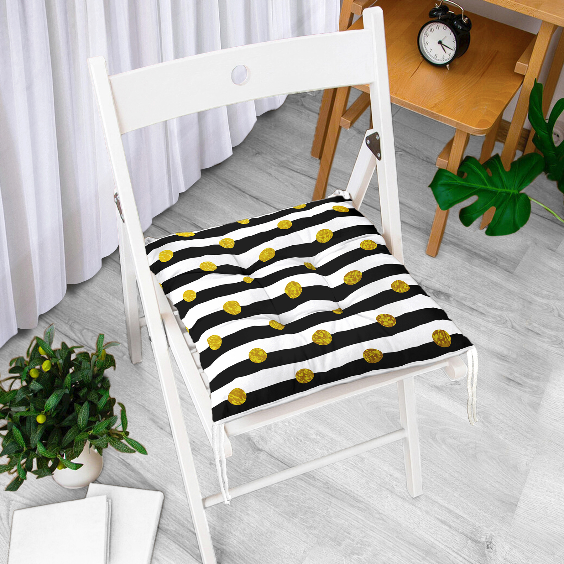 Beyaz Zemin Üzerinde Gold Detaylı Puantiye Dijital Baskılı Modern Pofuduk Sandalye Minderi Realhomes