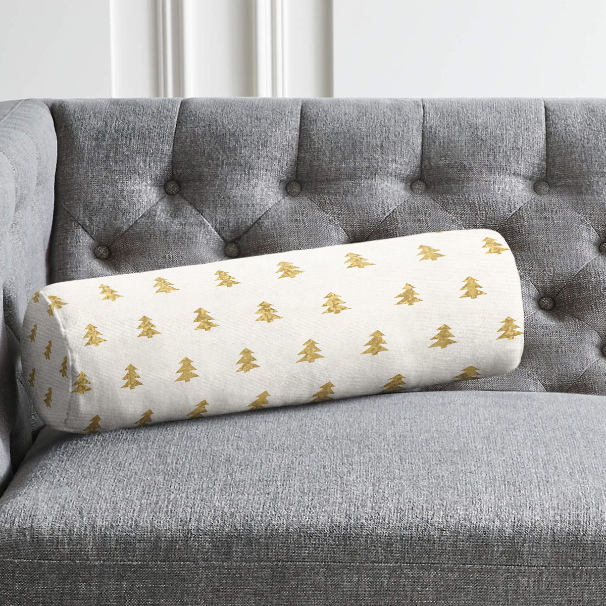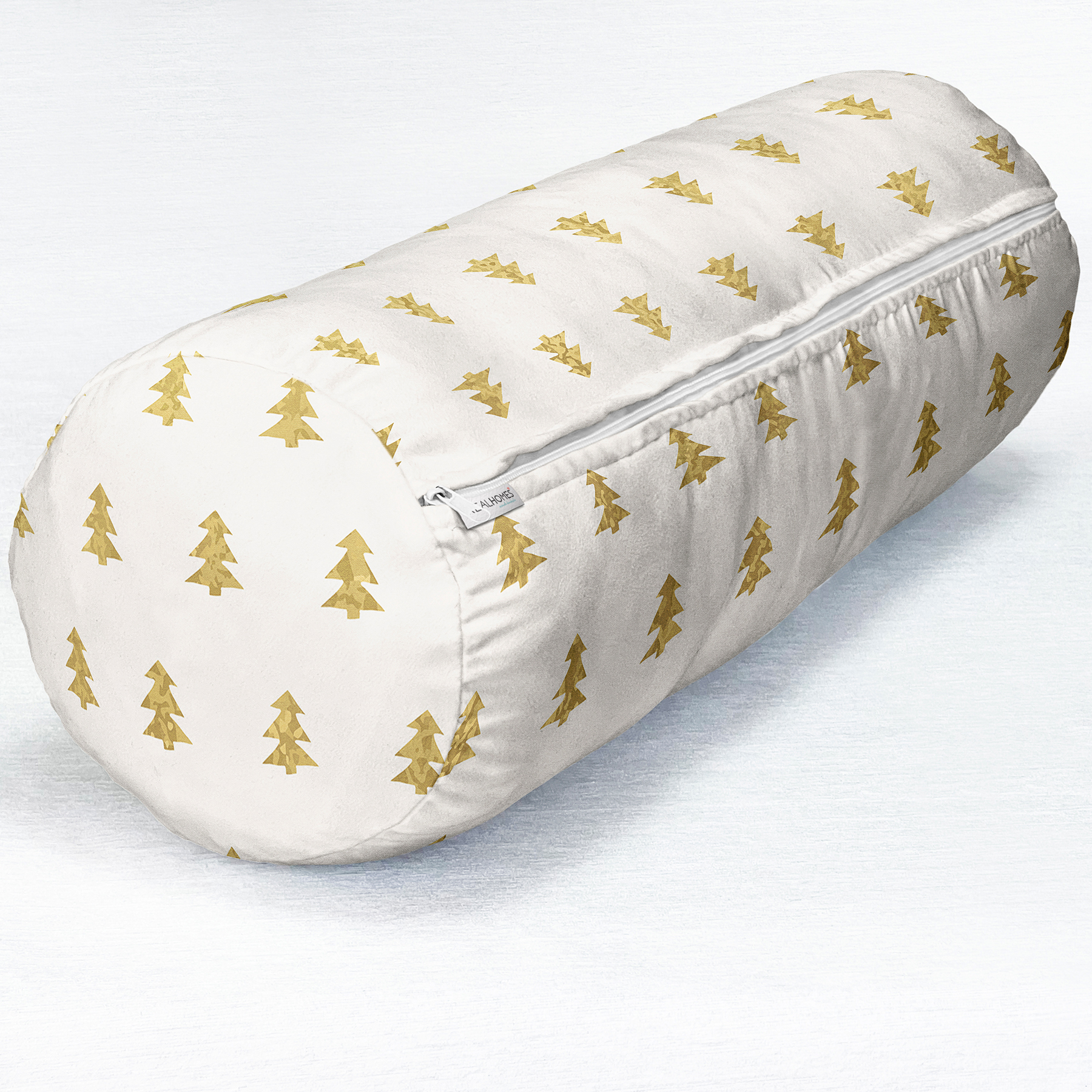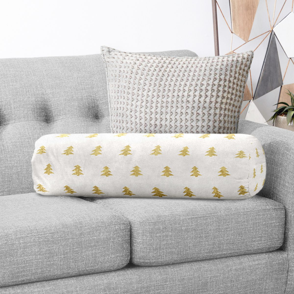 Beyaz Zemin Üzerinde Gold Renkli Çam Ağacı Desenli Dijital Baskılı Modern İç Dolgulu – Fermuarlı Süet Silindir Rulo Yastık Kırlent