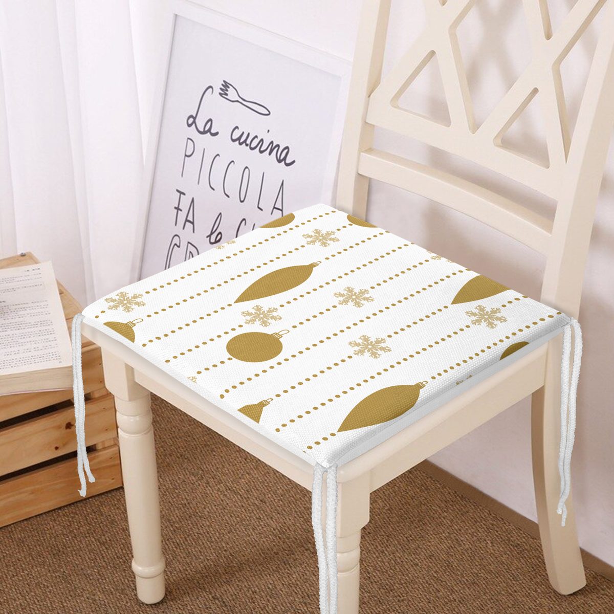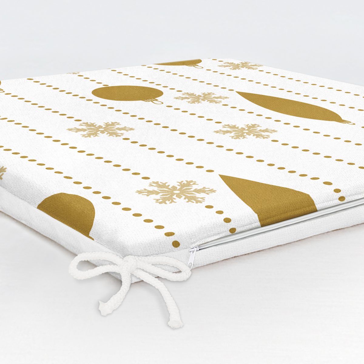 Beyaz Zemin Üzerinde Gold Renkli Yılbaşı Temalı Dijital Baskılı Modern Fermuarlı Sandalye Minderi Realhomes