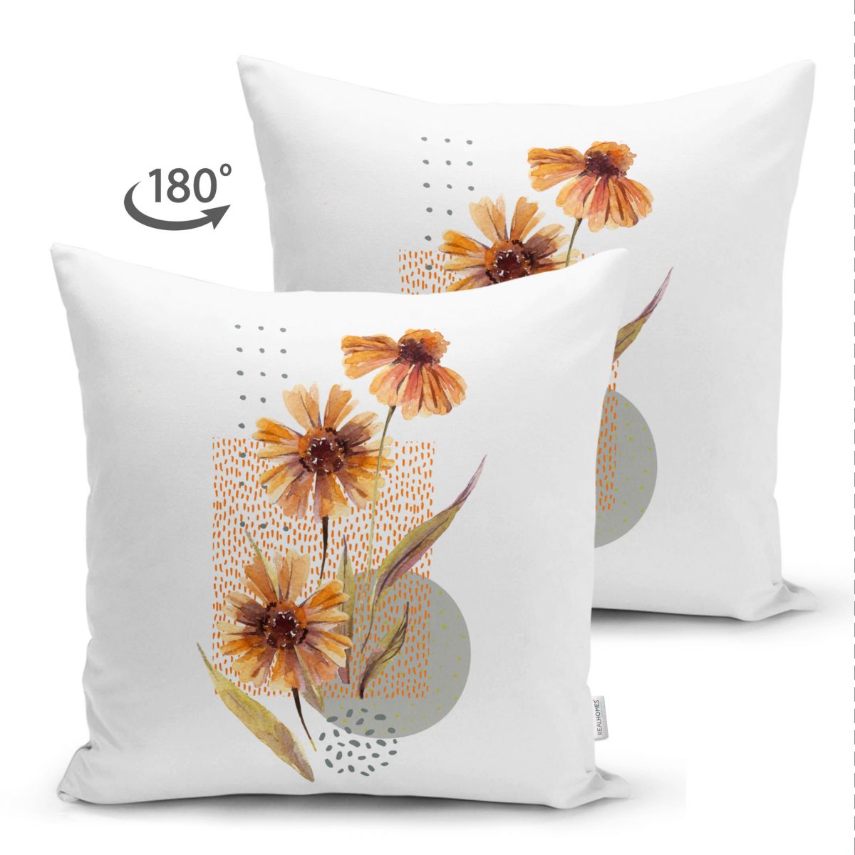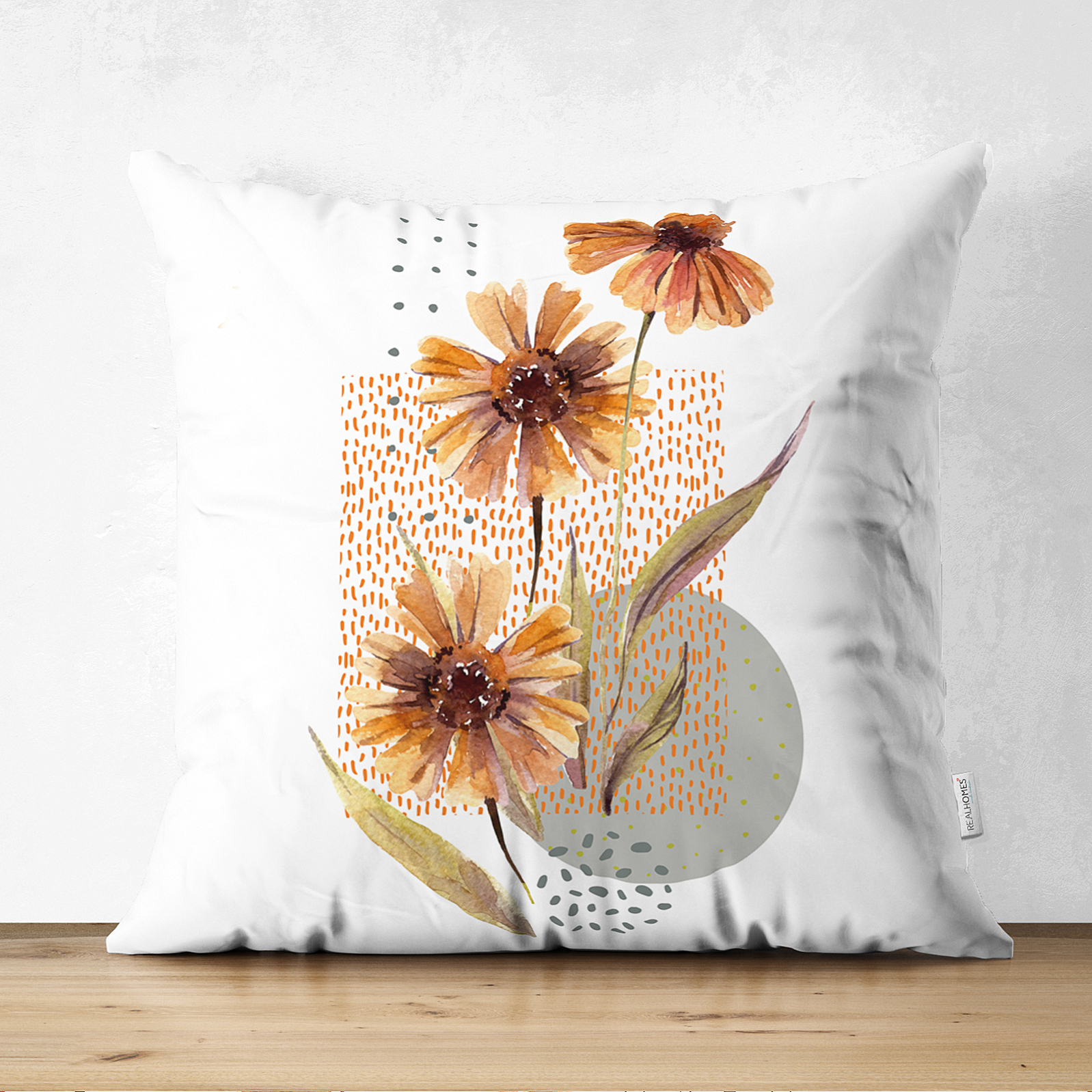 Beyaz Zemin Üzerinde Kurumuş Çiçek Motifli Modern Çift Taraflı Süet Yastık Kılıfı Realhomes