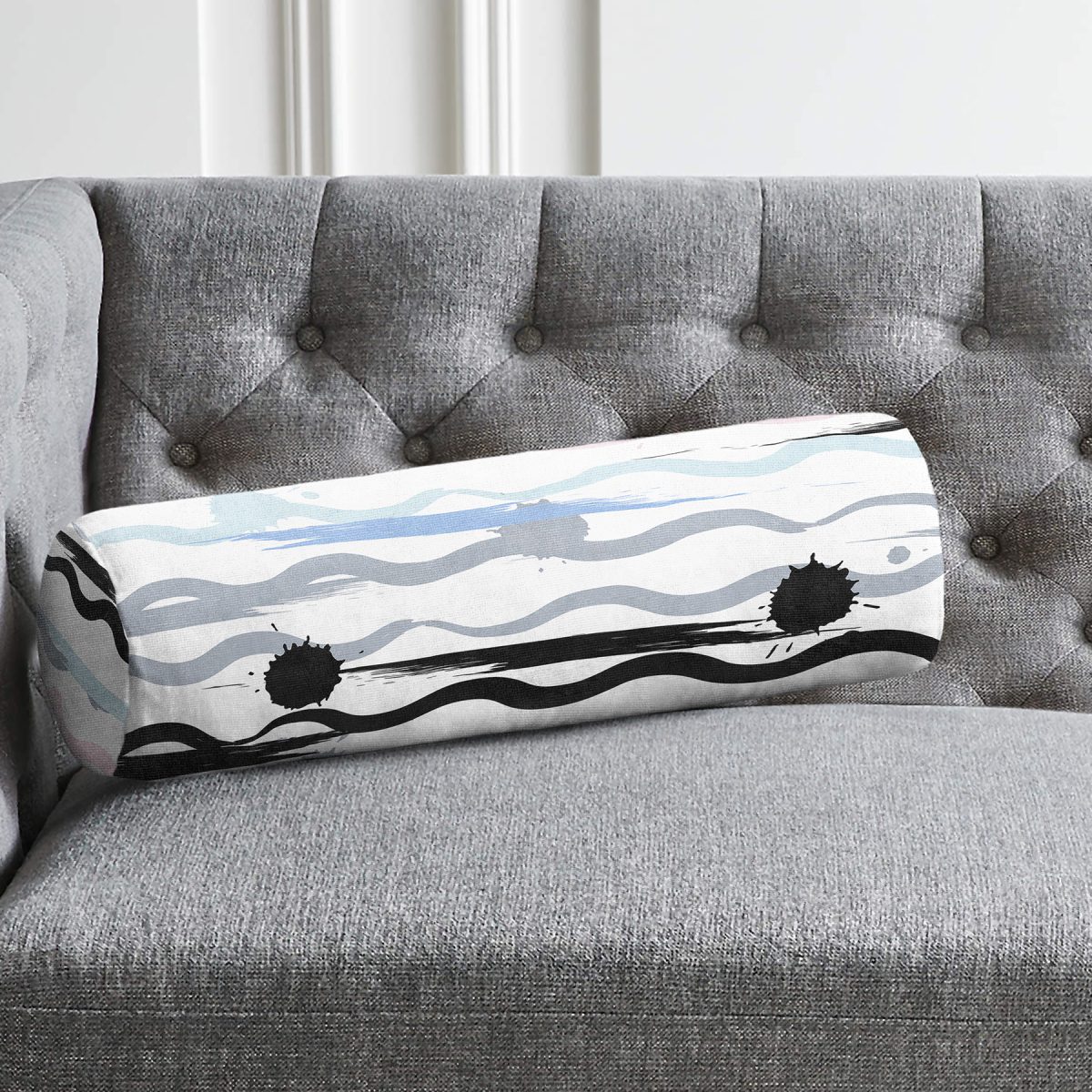 Beyaz Zemin Üzerinde Modern Çizgili Zikzak Desen Dijital Baskılı Modern İç Dolgulu – Fermuarlı Süet Silindir Yuvarlak Yastık Kırlent