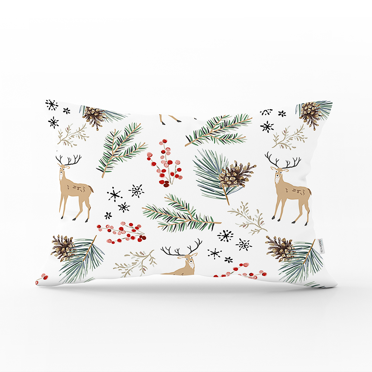 Beyaz Zemin Üzerinde Renkli Çam Yaprağı Desenli Modern Dikdörtgen Yastık Kırlent Kılıfı