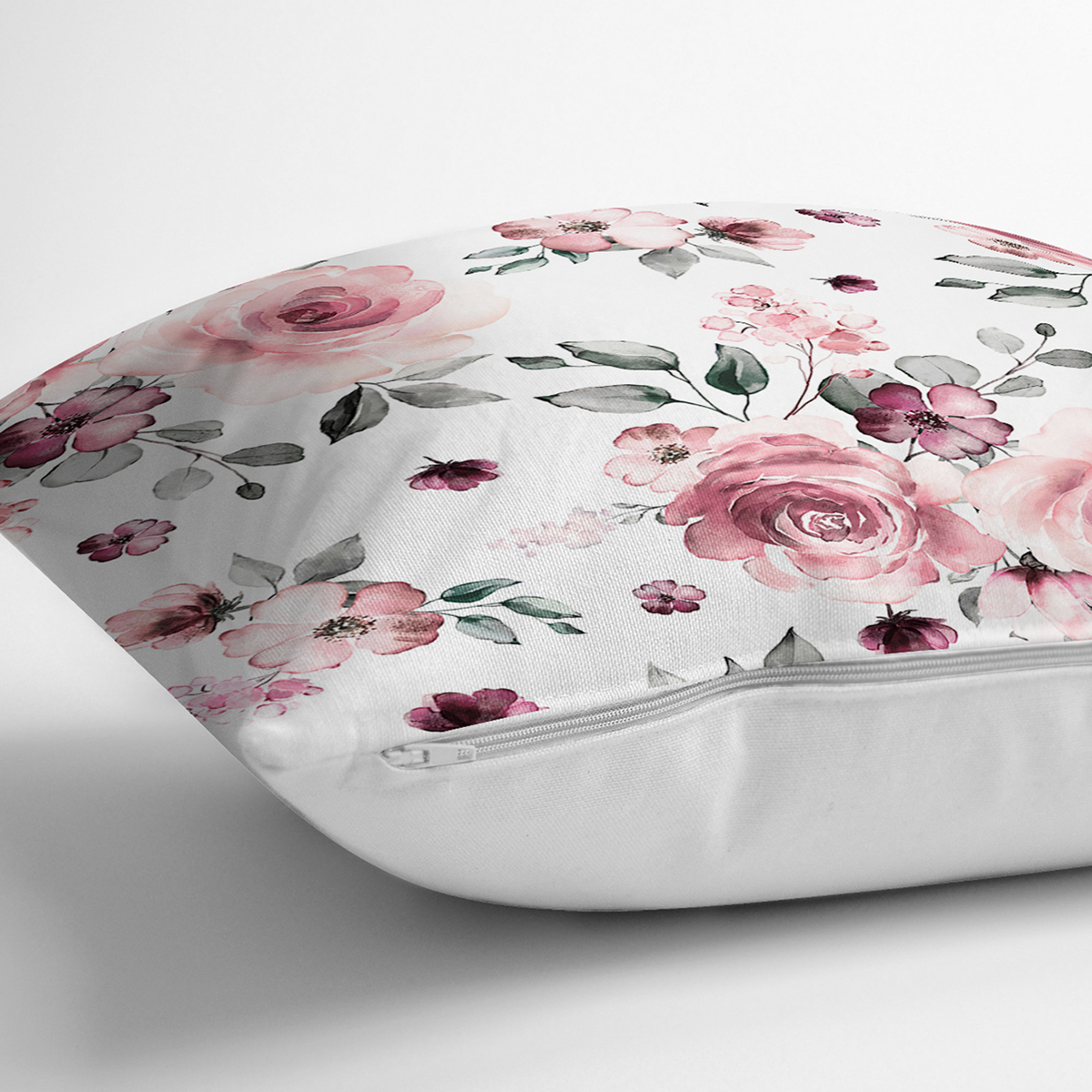 Beyaz Zemin Üzerinde Rengarenk Çiçek Desenli Yastık Kırlent Kılıfı