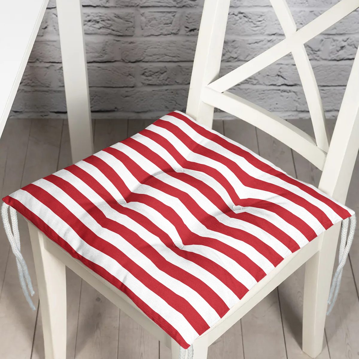 Beyaz Zemin Üzerinde Renkli Çizgili Dijital Baskılı Modern Pofuduk Sandalye Minderi Realhomes