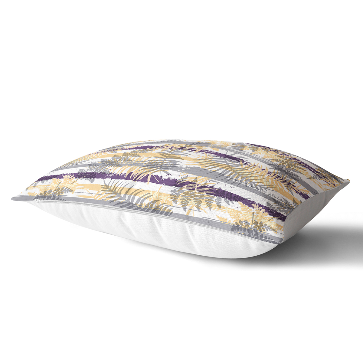 Beyaz Zemin Üzerinde Renkli Çizgili Yaprak Desenli Modern Dikdörtgen Yastık Kırlent Kılıfı