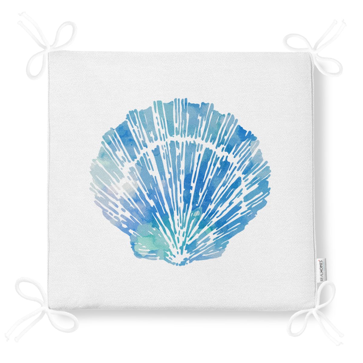 Beyaz Zemin Üzerinde Renkli Deniz Otu Desenli Dijital Baskılı Modern Fermuarlı Sandalye Minderi