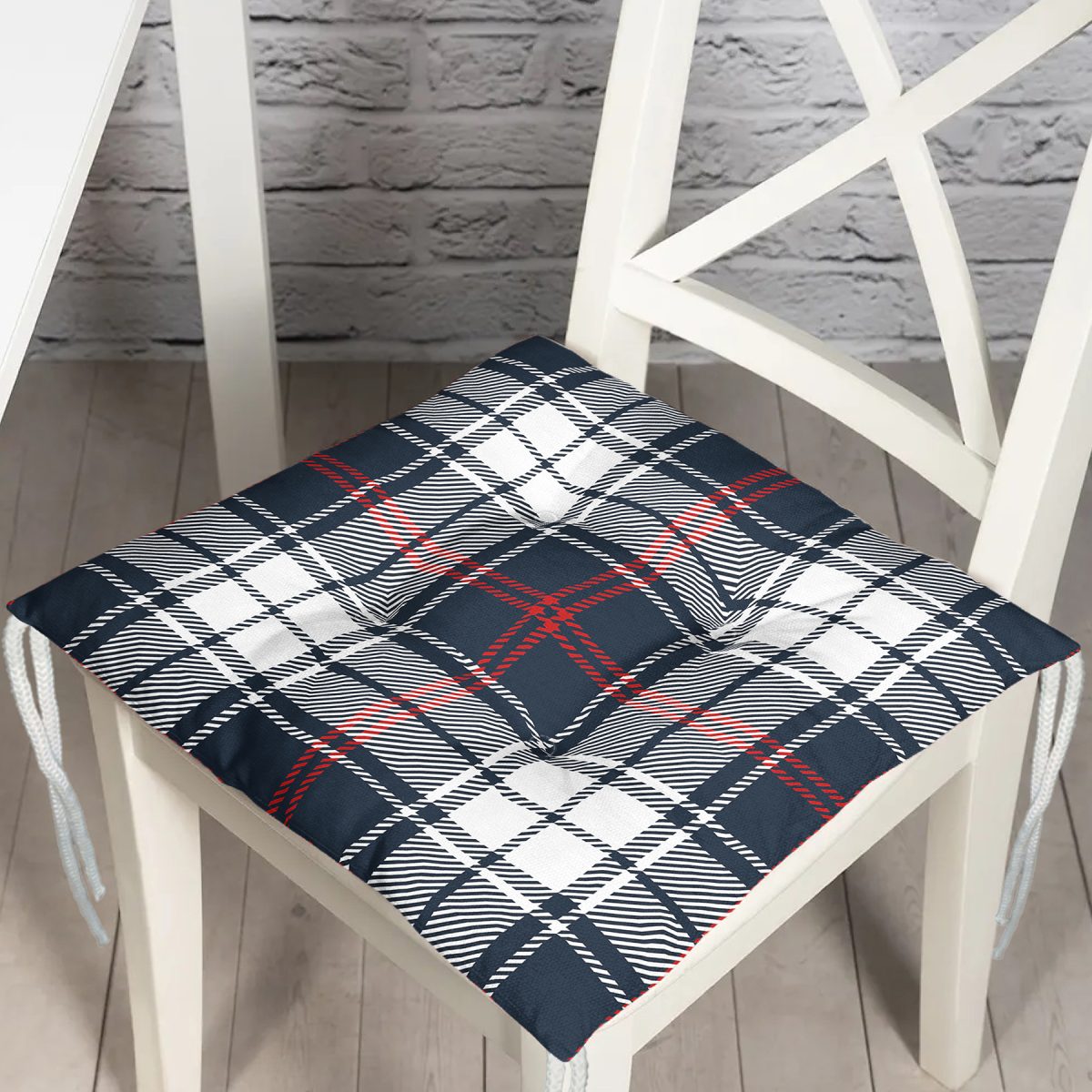 Beyaz Zemin Üzerinde Renkli Ekose Desenli Dijital Baskılı Modern Pofuduk Sandalye Minderi