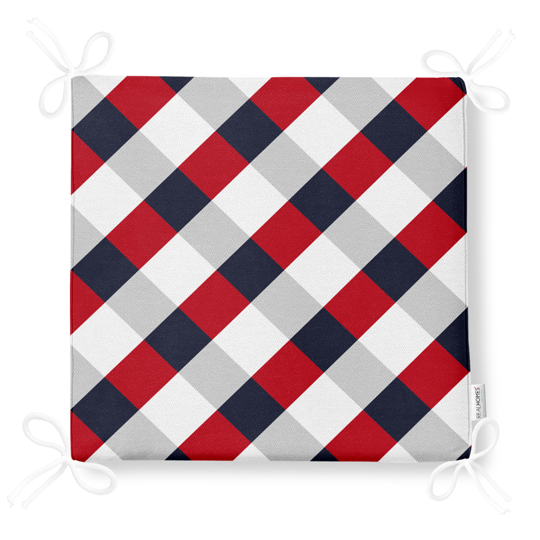 Beyaz Zemin Üzerinde Renkli Geometrik Desenli Dijital Baskılı Modern Fermuarlı Sandalye Minderi Realhomes