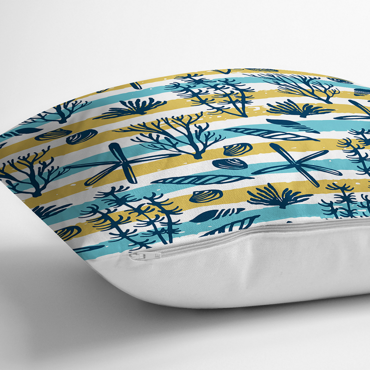 Beyaz Zemin Üzerinde Renkli Modern Çizgili Deniz Motifli Yastık Kırlent Kılıfı