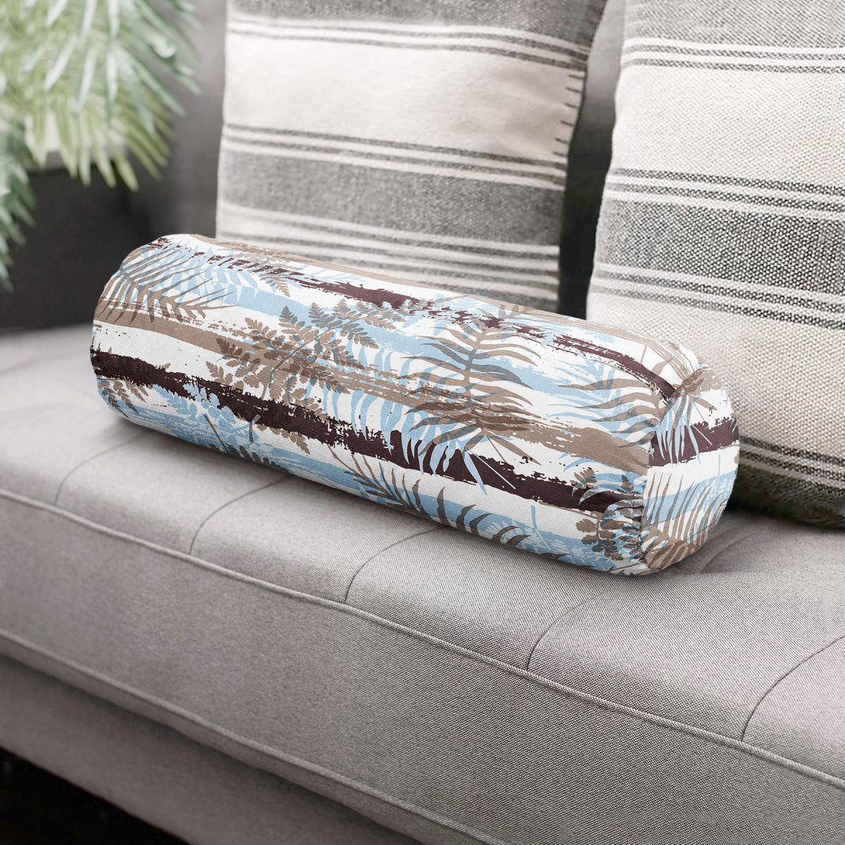 Beyaz Zemin Üzerinde Renkli Yaprak Desenli Dijital Baskılı Modern İç Dolgulu – Fermuarlı Süet Berjer Silindir Yastık Kırlent