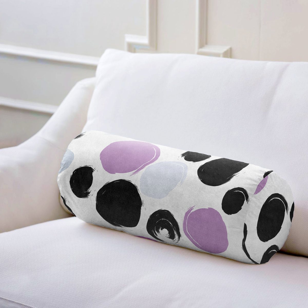 Beyaz Zemin Üzerinde Renkli Yuvarlak Desenli Dijital Baskılı Modern İç Dolgulu – Fermuarlı Süet Berjer Silindir Yastık Kırlent