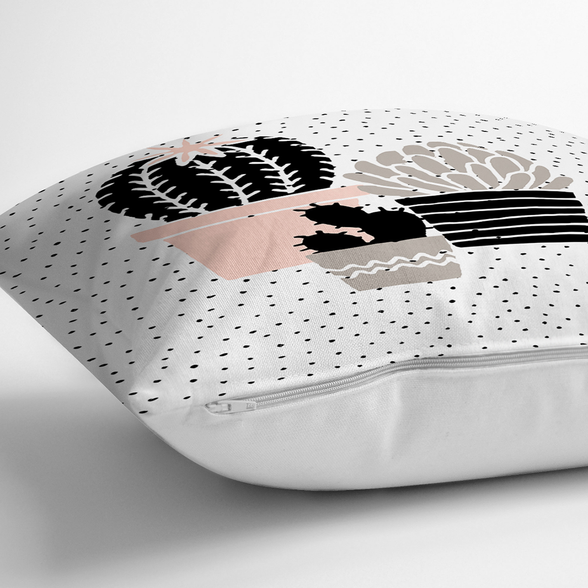 Beyaz Zemin Üzerinde Siyah Puantiyeli Kaktüs Desenli Yastık Kırlent Kılıfı Realhomes