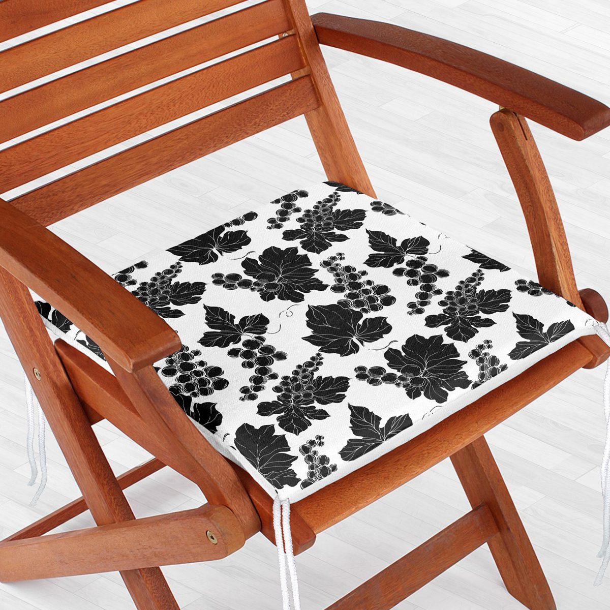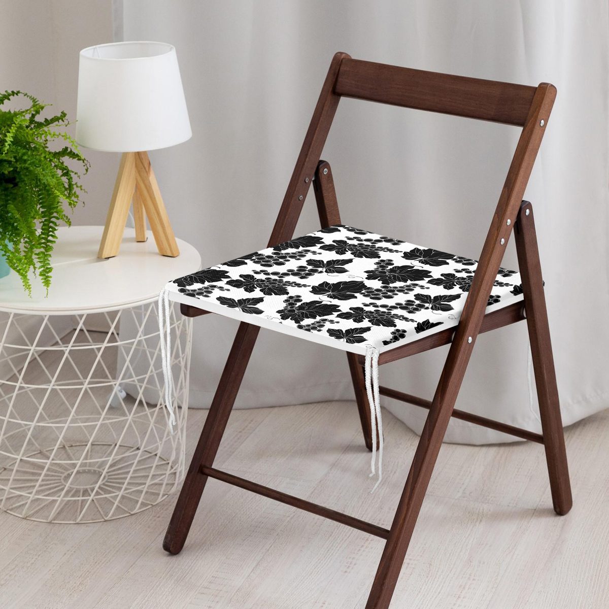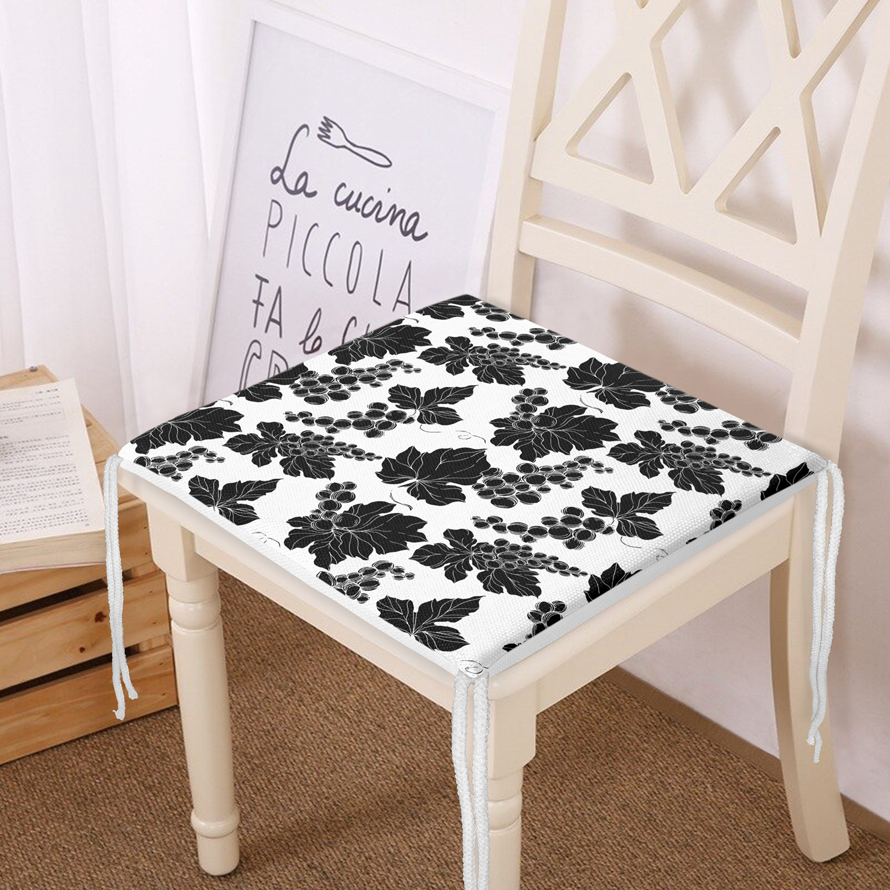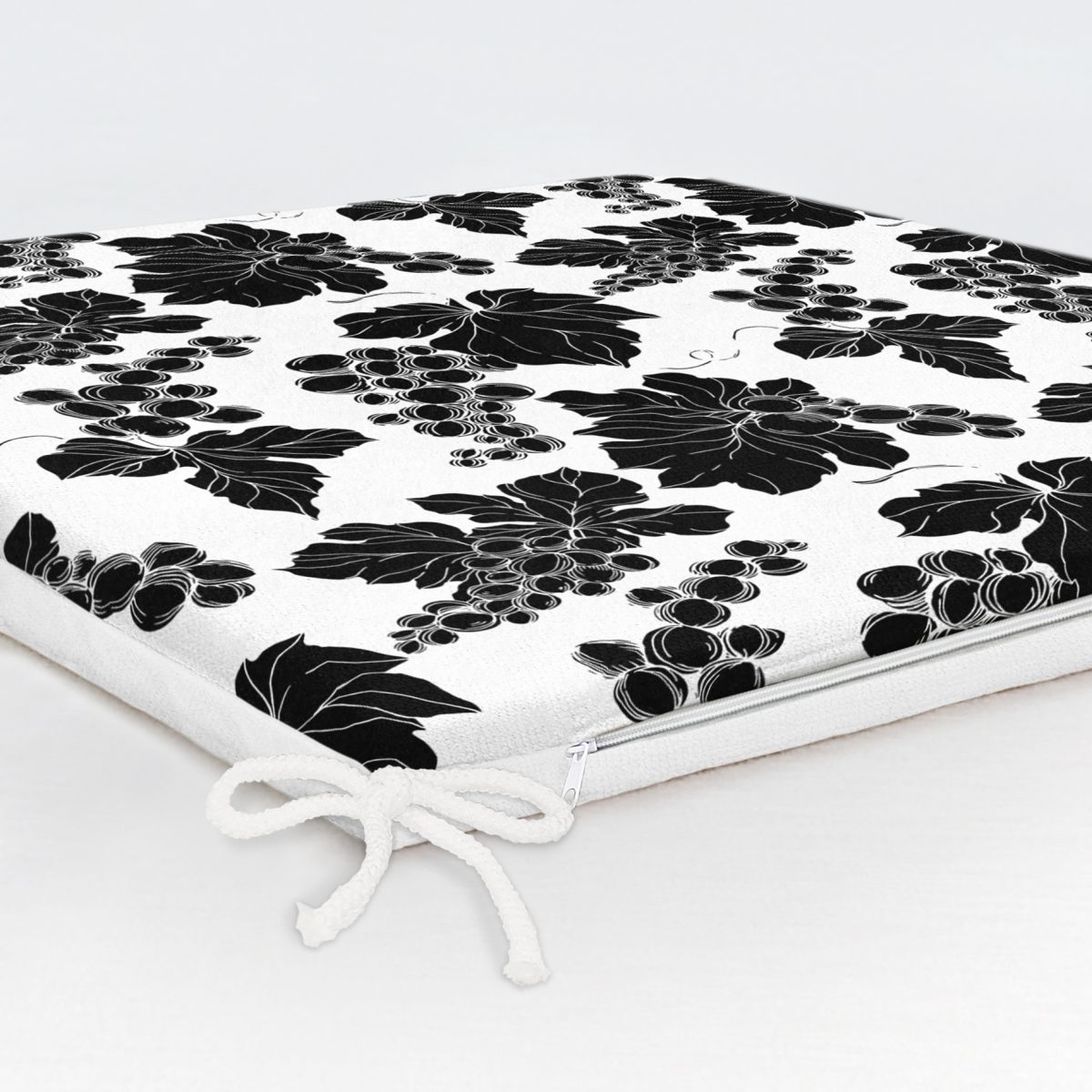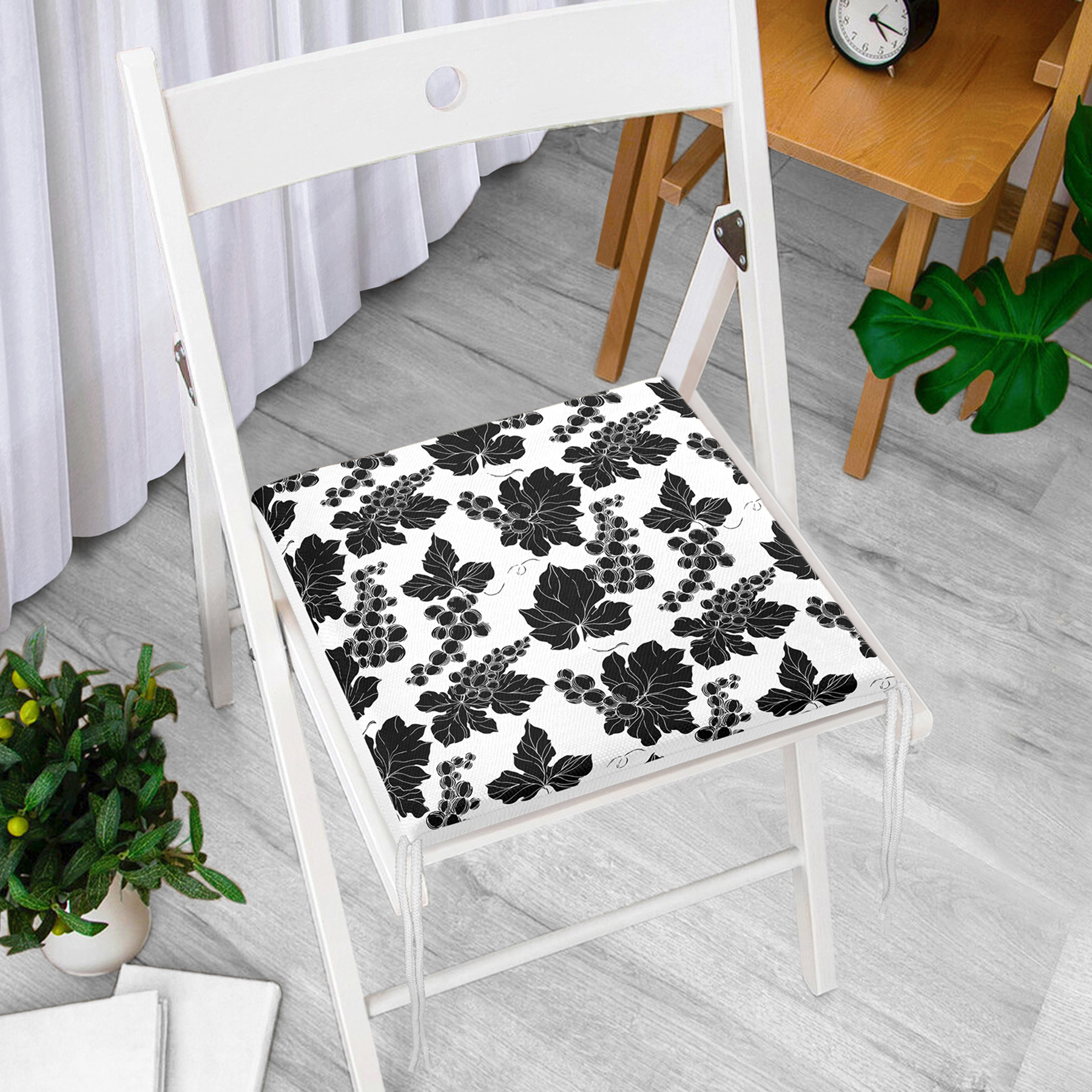Beyaz Zemin Üzerinde Siyah Yaprak Desenli Dijital Baskılı Modern Fermuarlı Sandalye Minderi