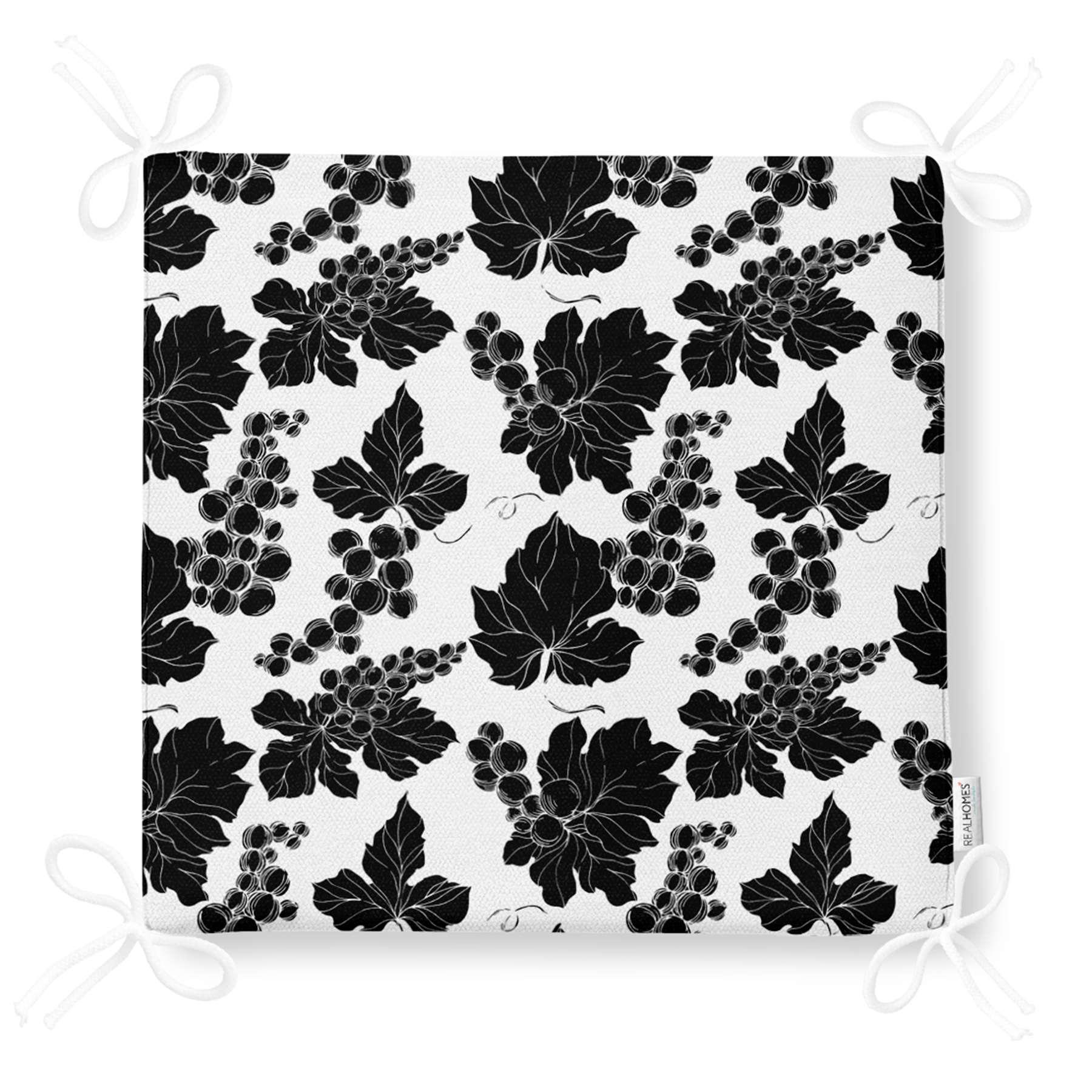 Beyaz Zemin Üzerinde Siyah Yaprak Desenli Dijital Baskılı Modern Fermuarlı Sandalye Minderi Realhomes