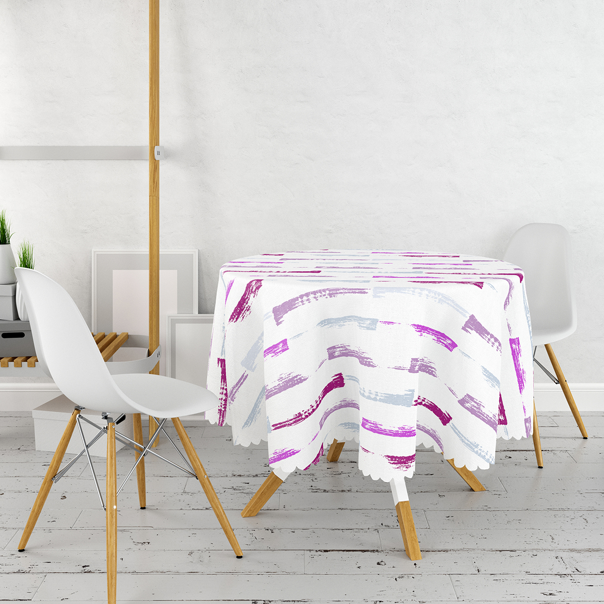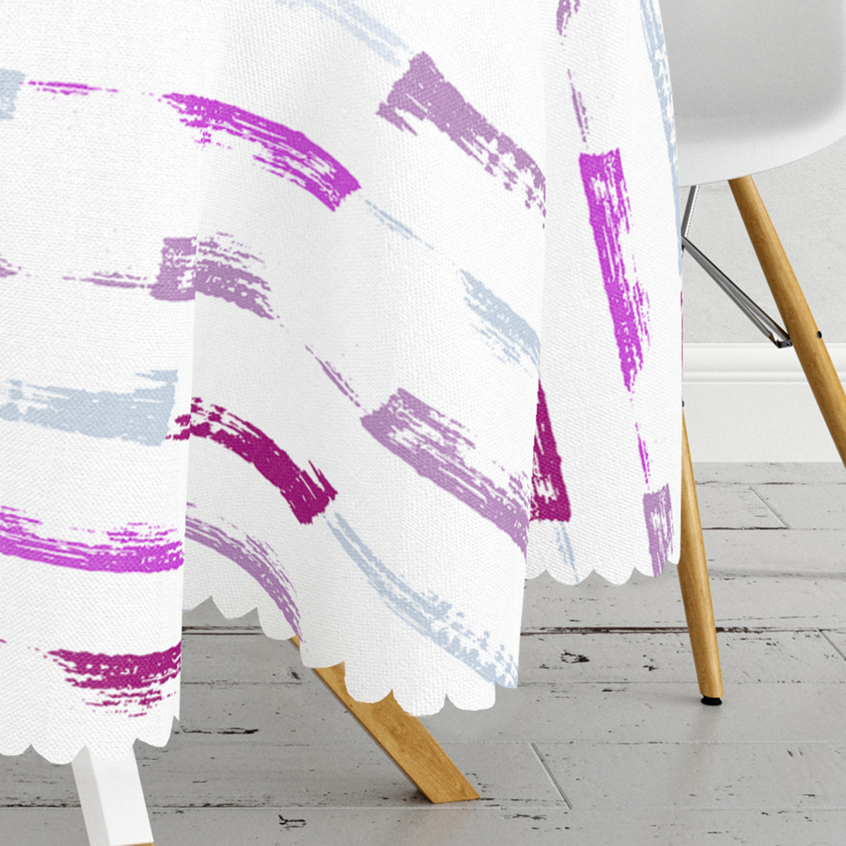 Beyaz Zemin Üzerinde Soyut Renkli Çizgili Yuvarlak Masa Örtüsü – Çap 140cm