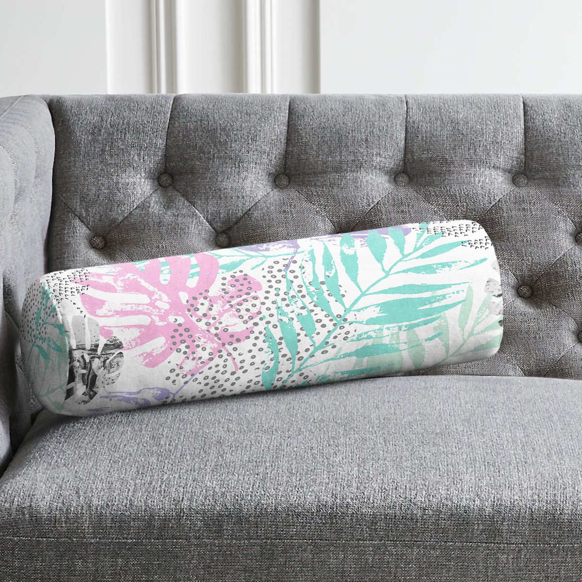 Beyaz Zemin Üzerinde Sulu Boya Renkli Yaprak Çizimli Modern İç Dolgulu – Fermuarlı Süet Silindir Rulo Yastık Kırlent
