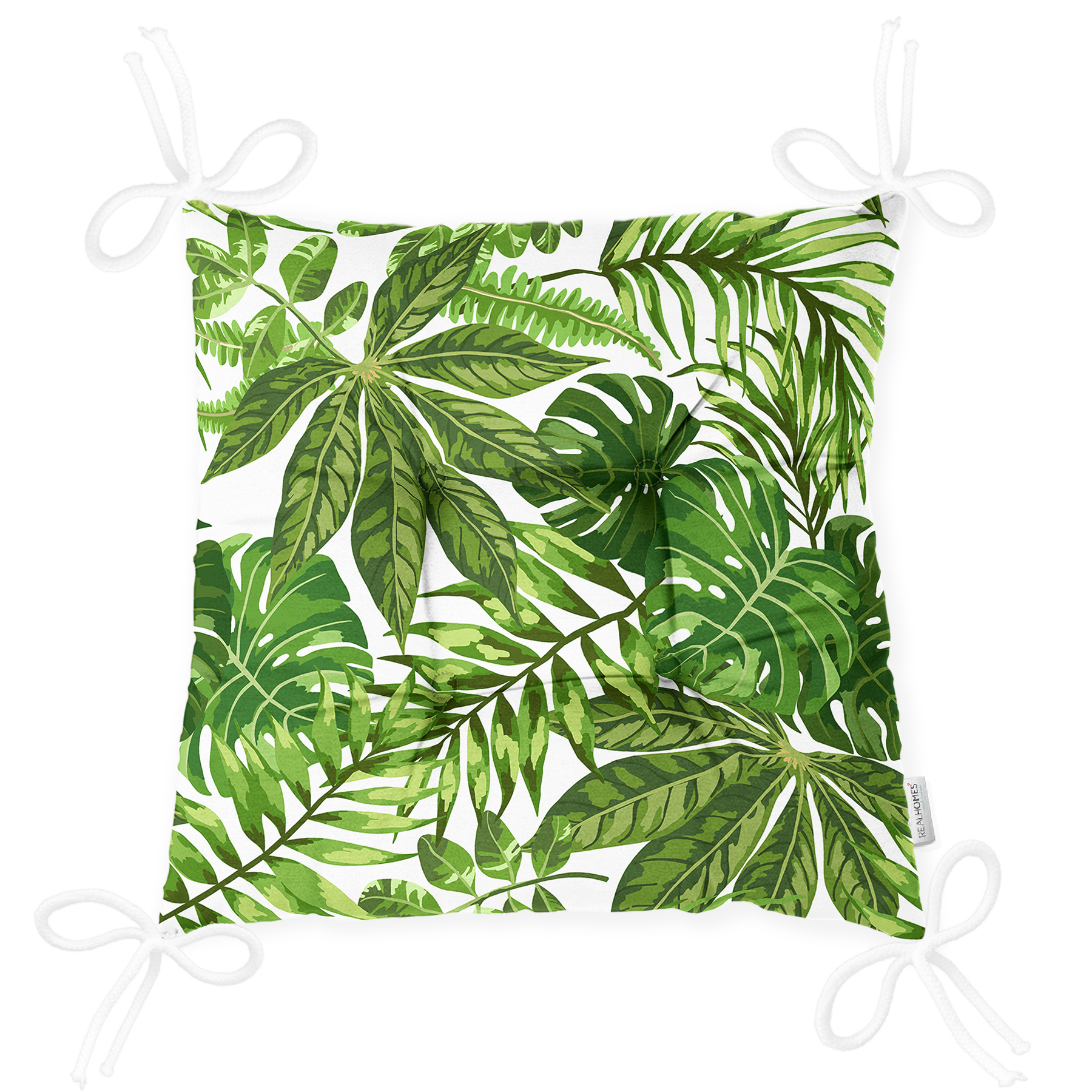 Beyaz Zemin Üzerinde Yeşil Yaprak Desenli Dijital Baskılı Modern Pofuduk Sandalye Minderi Realhomes