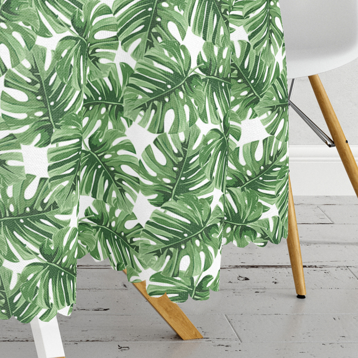 Beyaz Zemin Üzerinde Yeşil Yaprak Desenli Yuvarlak Masa Örtüsü - Çap 140cm Realhomes