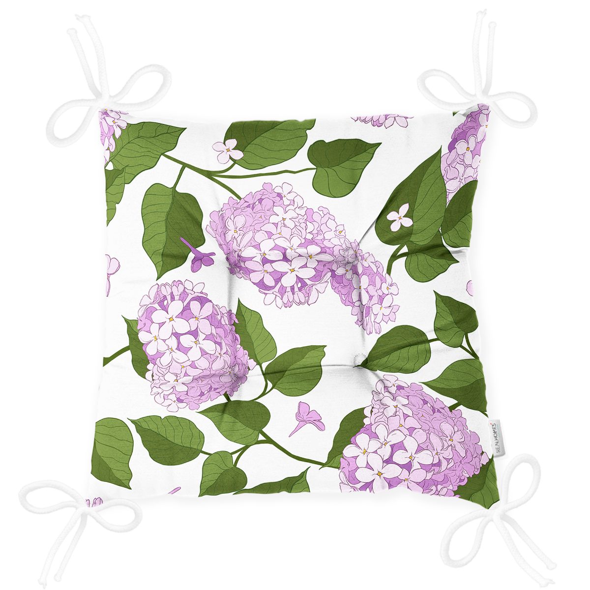 Beyaz Zemin Üzerinde Yeşil Yapraklı Çiçek Desenli Dijital Baskılı Modern Pofuduk Sandalye Minderi Realhomes