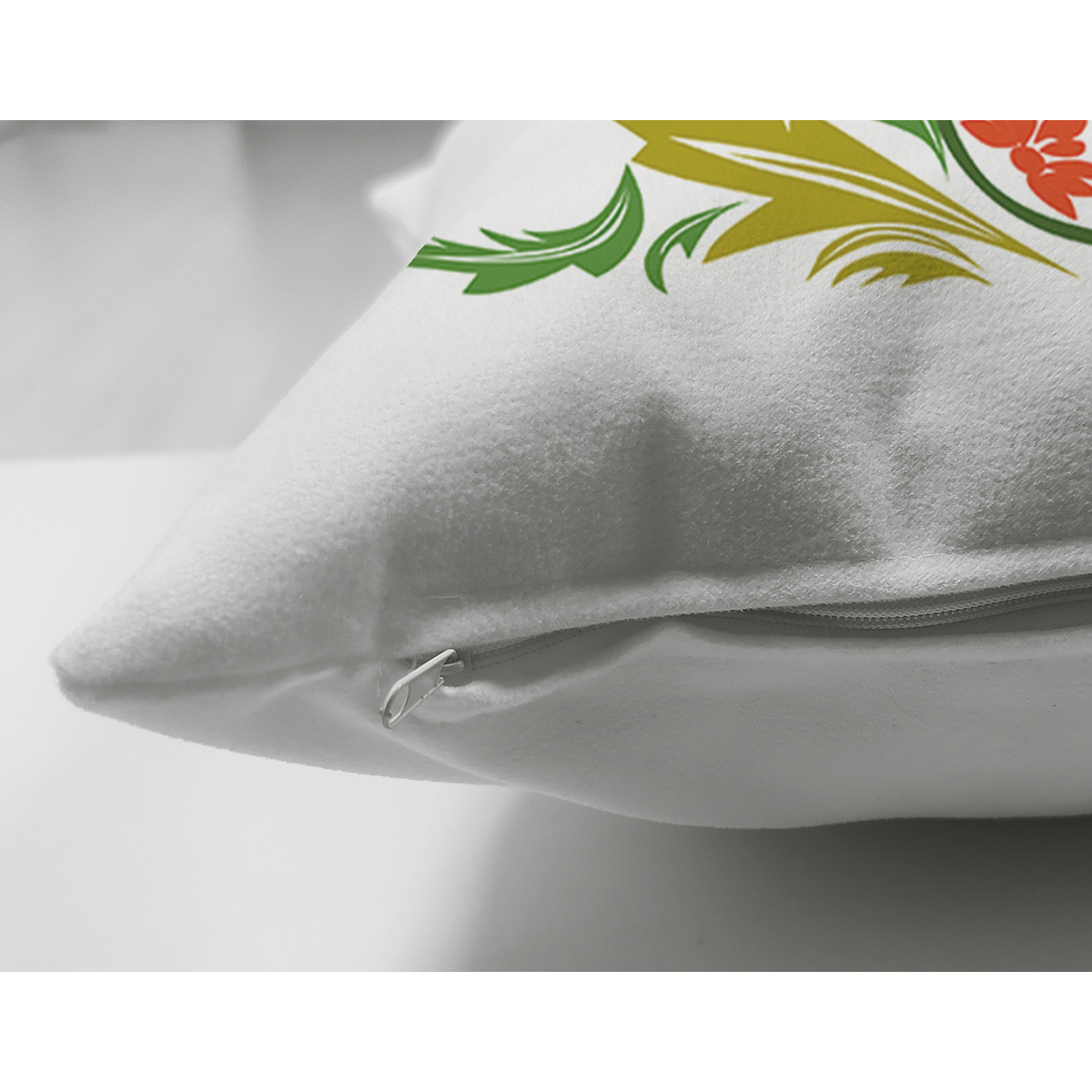 Beyaz Zemin Yaprak Temalı H Harfi Özel Tasarım Modern Suet Yastık Kırlent Kılıfı