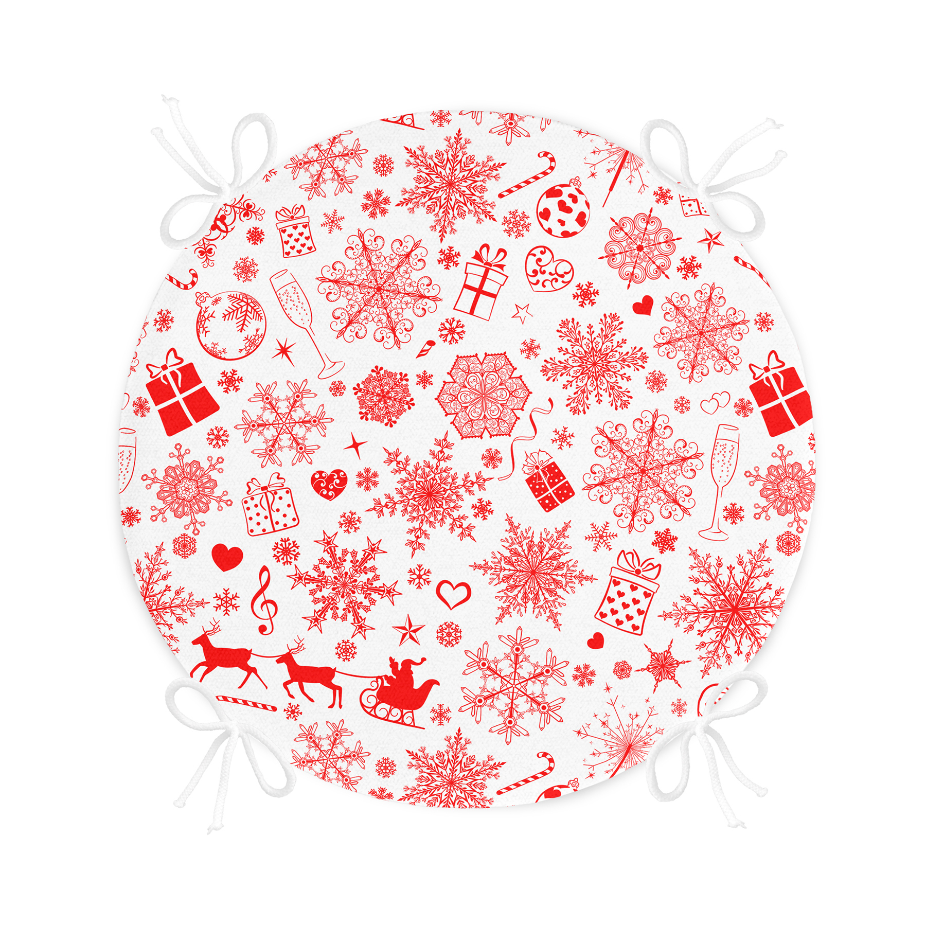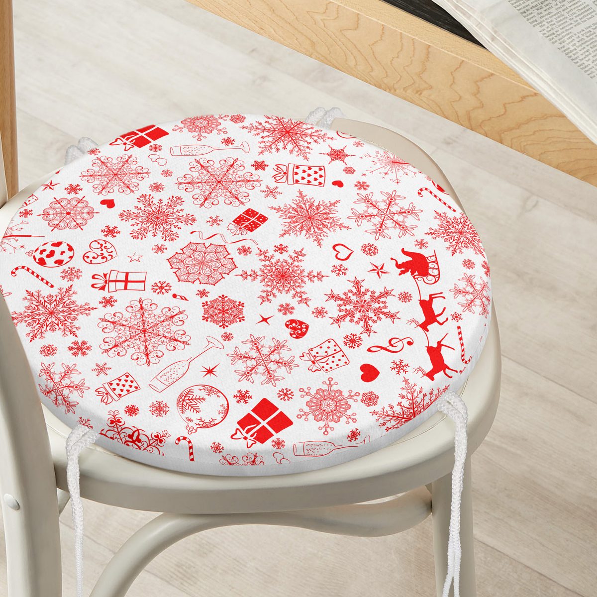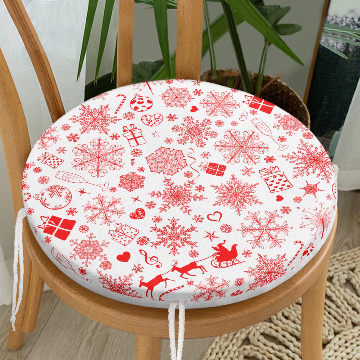 Beyaz Zemin Yılbaşı Temalı Özel Tasarımlı Dijital Baskılı Modern Yuvarlak Fermuarlı Sandalye Minderi