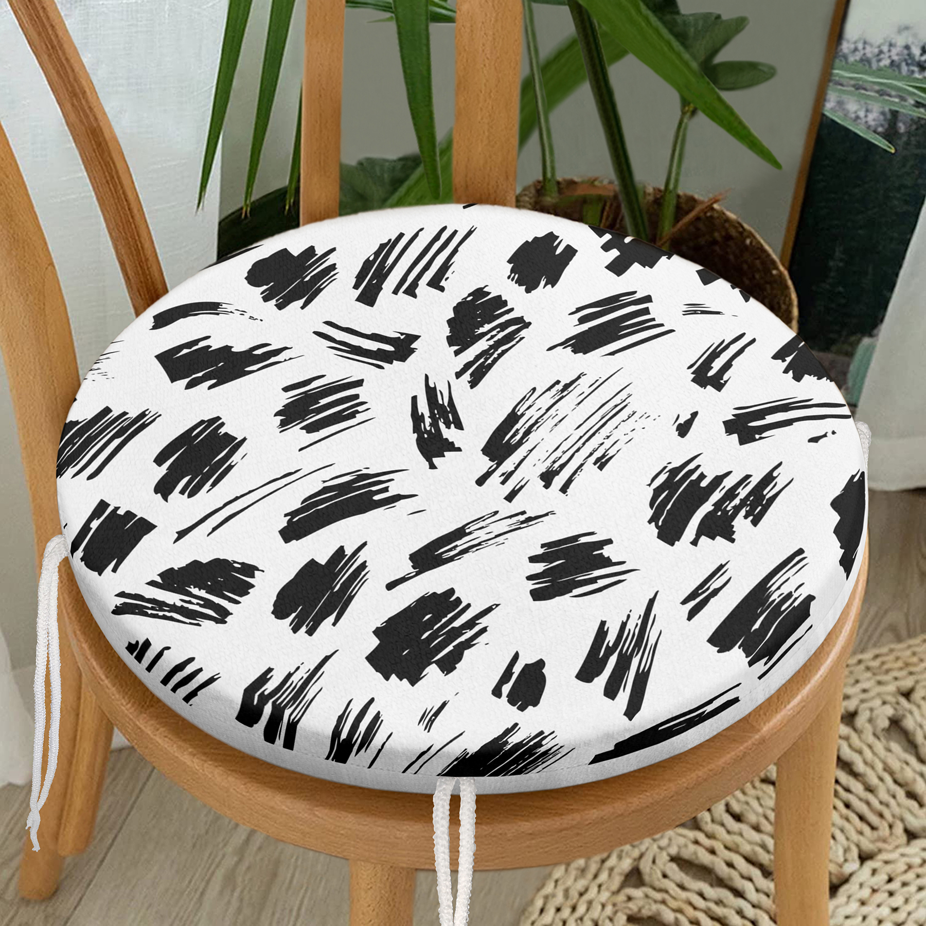 Beyaz Zeminde Anlamsız Çizgiler Motifli Yuvarlak Fermuarlı Sandalye Minderi