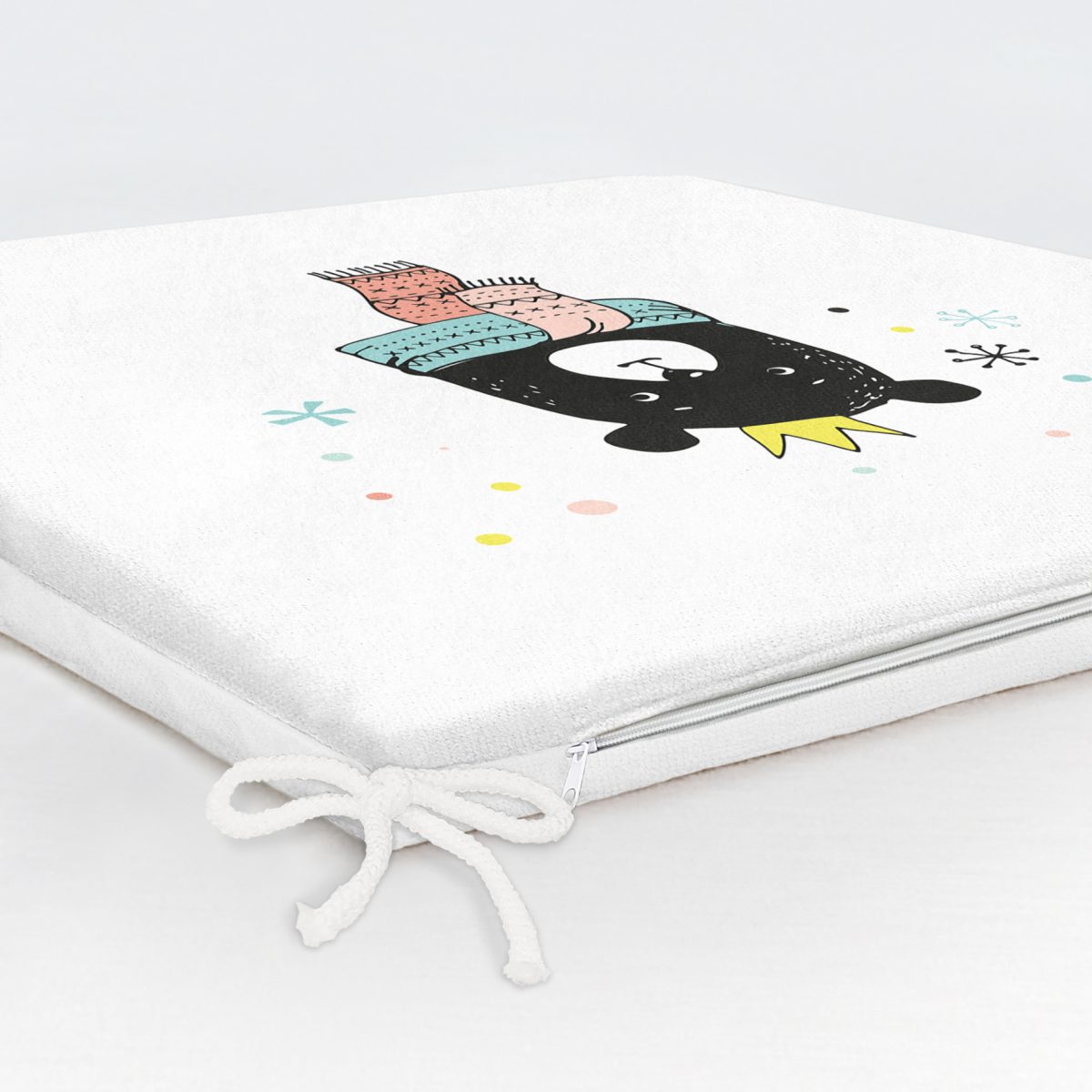Beyaz Zeminde Atkılı Ayıcık Desenli Modern Fermuarlı Sandalye Minderi