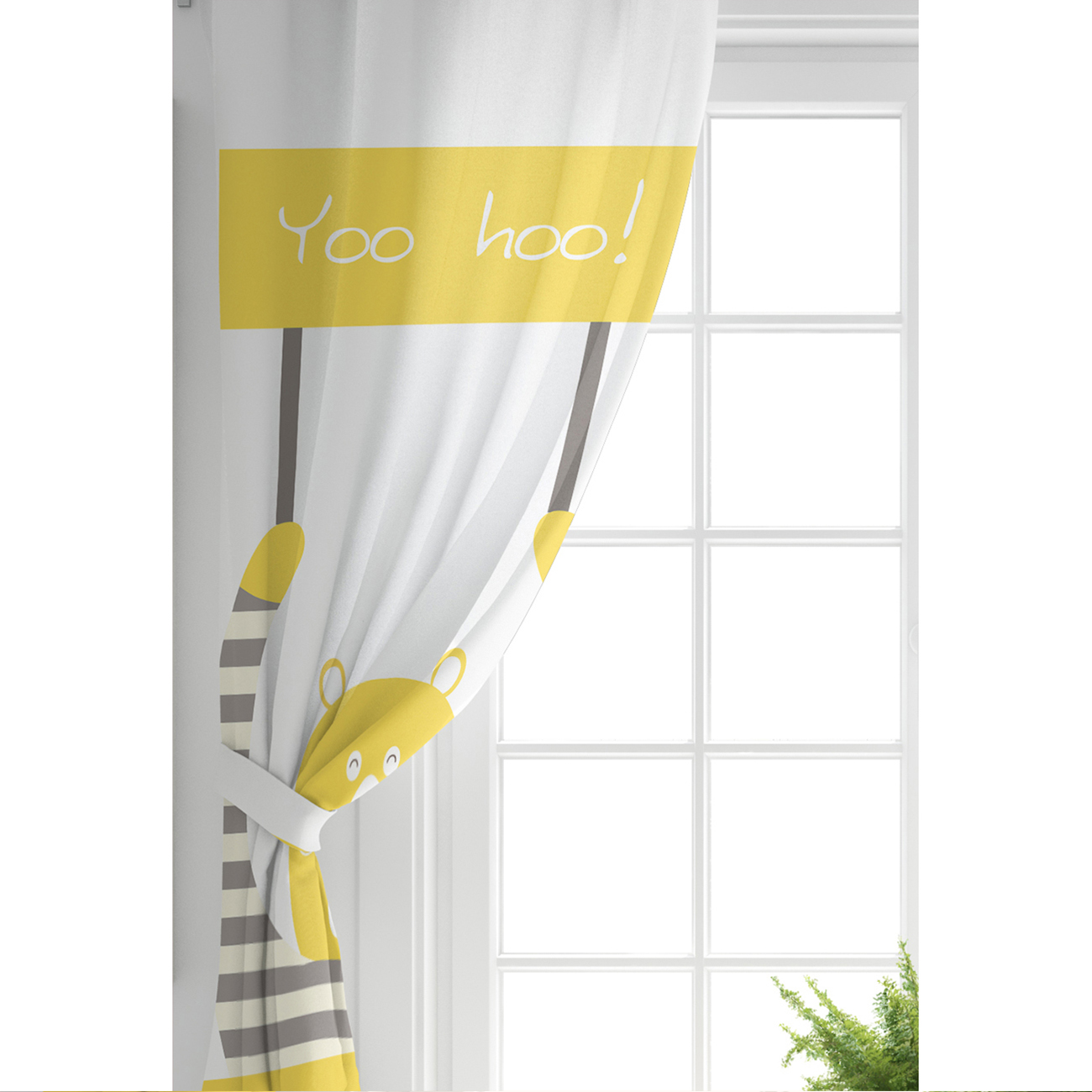 Beyaz Zeminde Ayıcık Motifli Dijital Baskılı Çocuk Odası Fon Perde