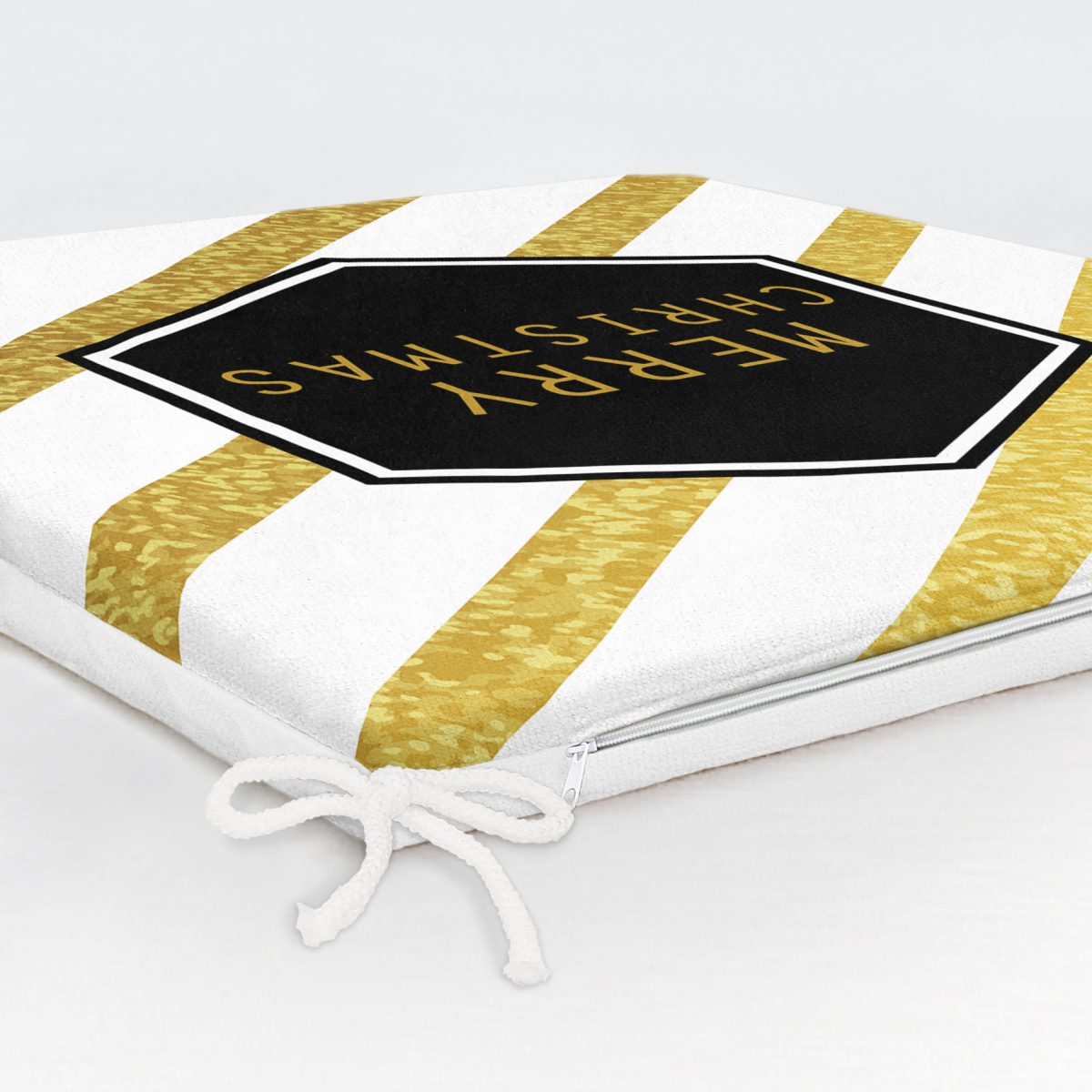 Beyaz Zeminde Gold Detaylı Merry Christmas Yazılı Dijital Baskılı Modern Fermuarlı Sandalye Minderi