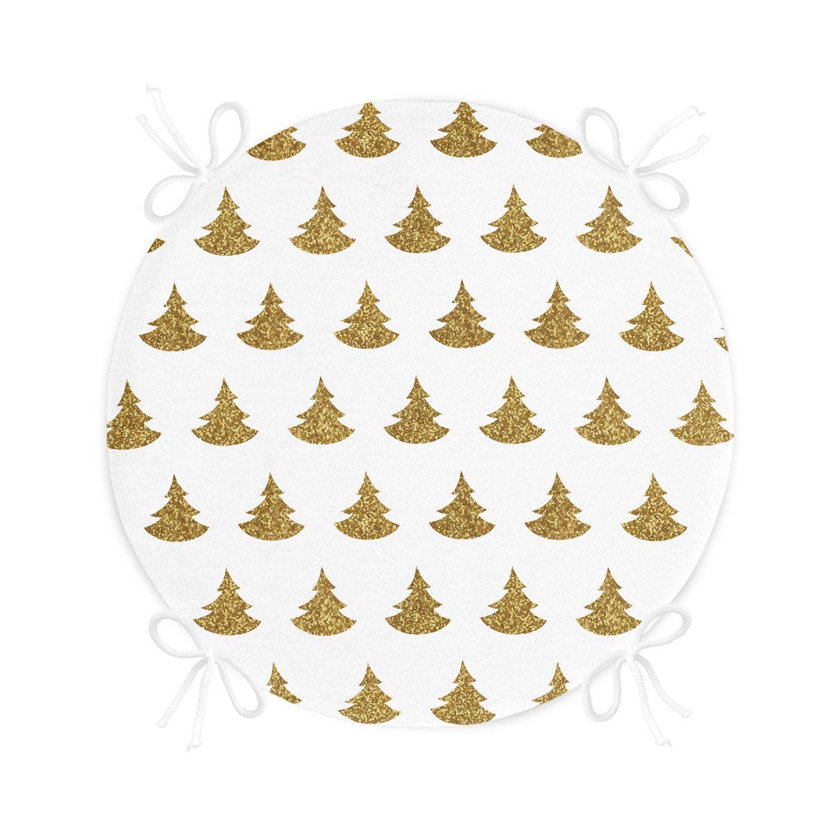 Beyaz Zeminde Gold Renkli Çam Ağacı Desenli Dijital Baskılı Modern Yuvarlak Fermuarlı Sandalye Minderi