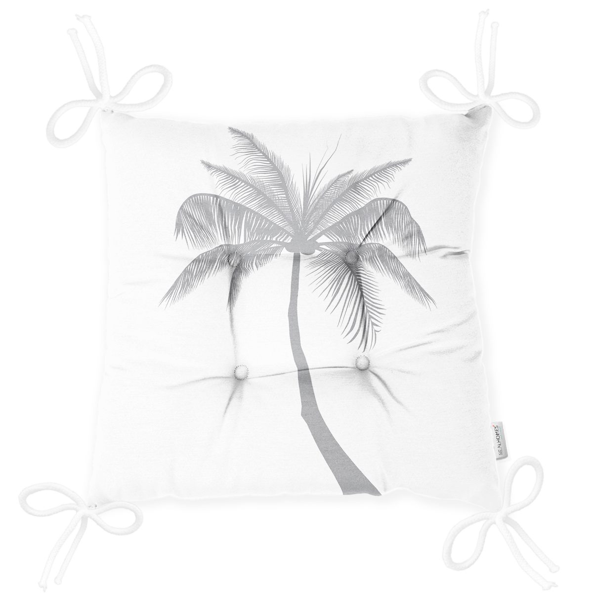 Beyaz Zeminde Gri Palmiye Desenli Modern Pofuduk Sandalye Minderi