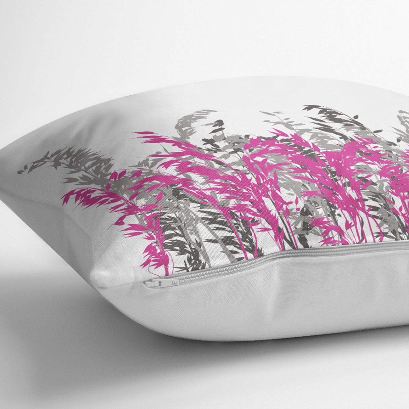 Beyaz Zeminde Gri Ve Fuşya Çiçek Baskılı Kırlent Kılıfı Realhomes
