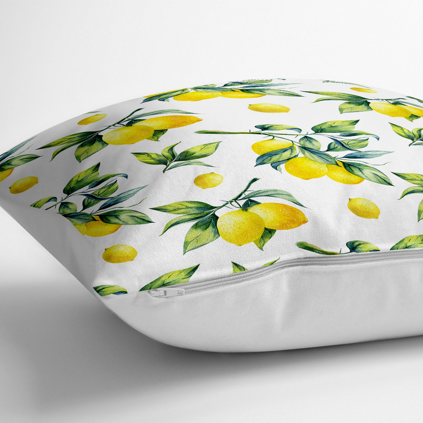 Beyaz Zeminde Limon Desenli 3D Dekoratif Yer Minderi – 70 x 70 cm