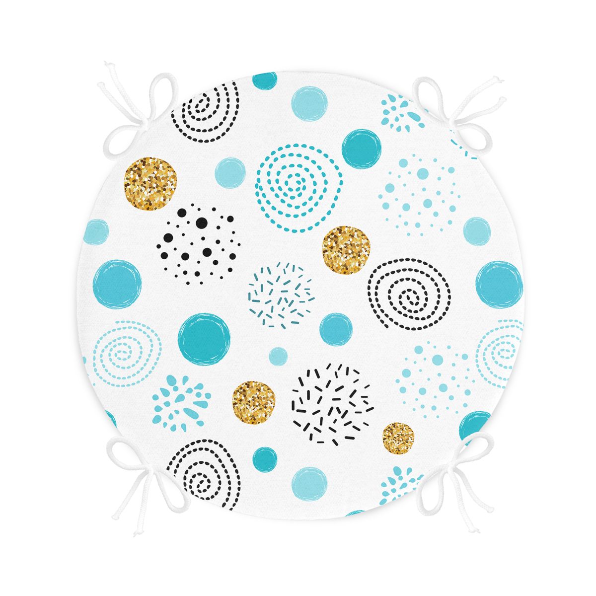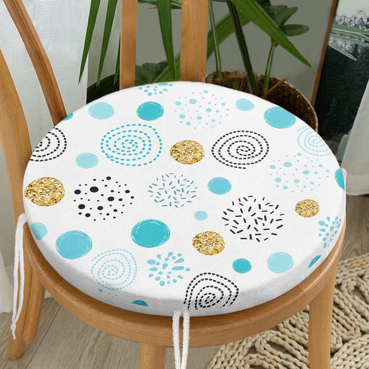 Beyaz Zeminde Mavi Gold Puanlı Dijital Baskılı Modern Yuvarlak Fermuarlı Sandalye Minderi
