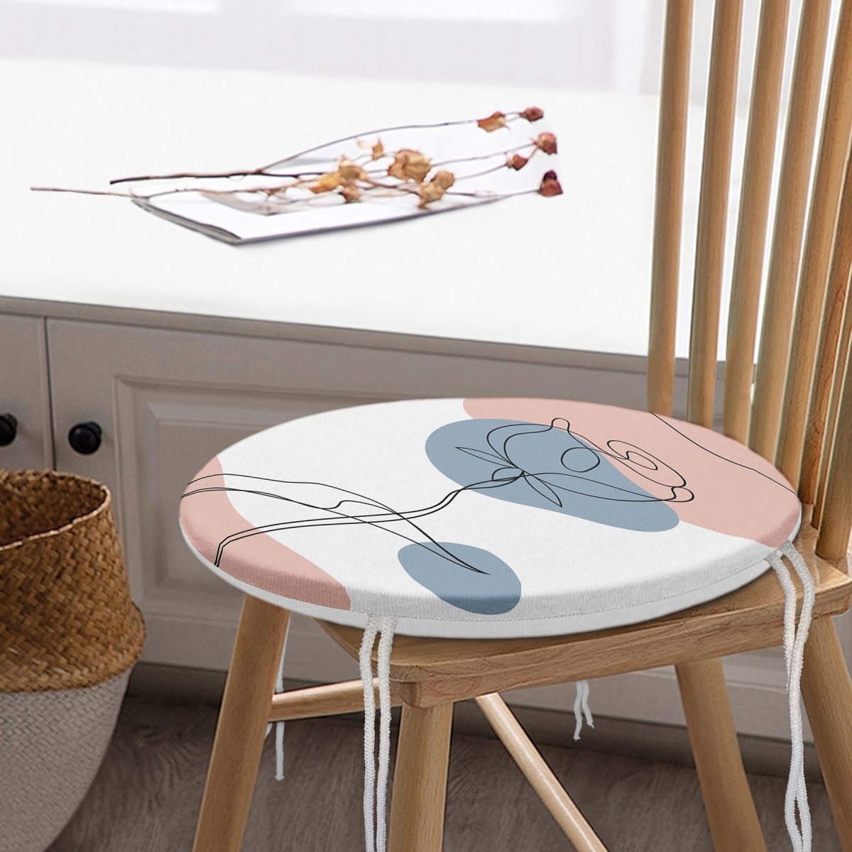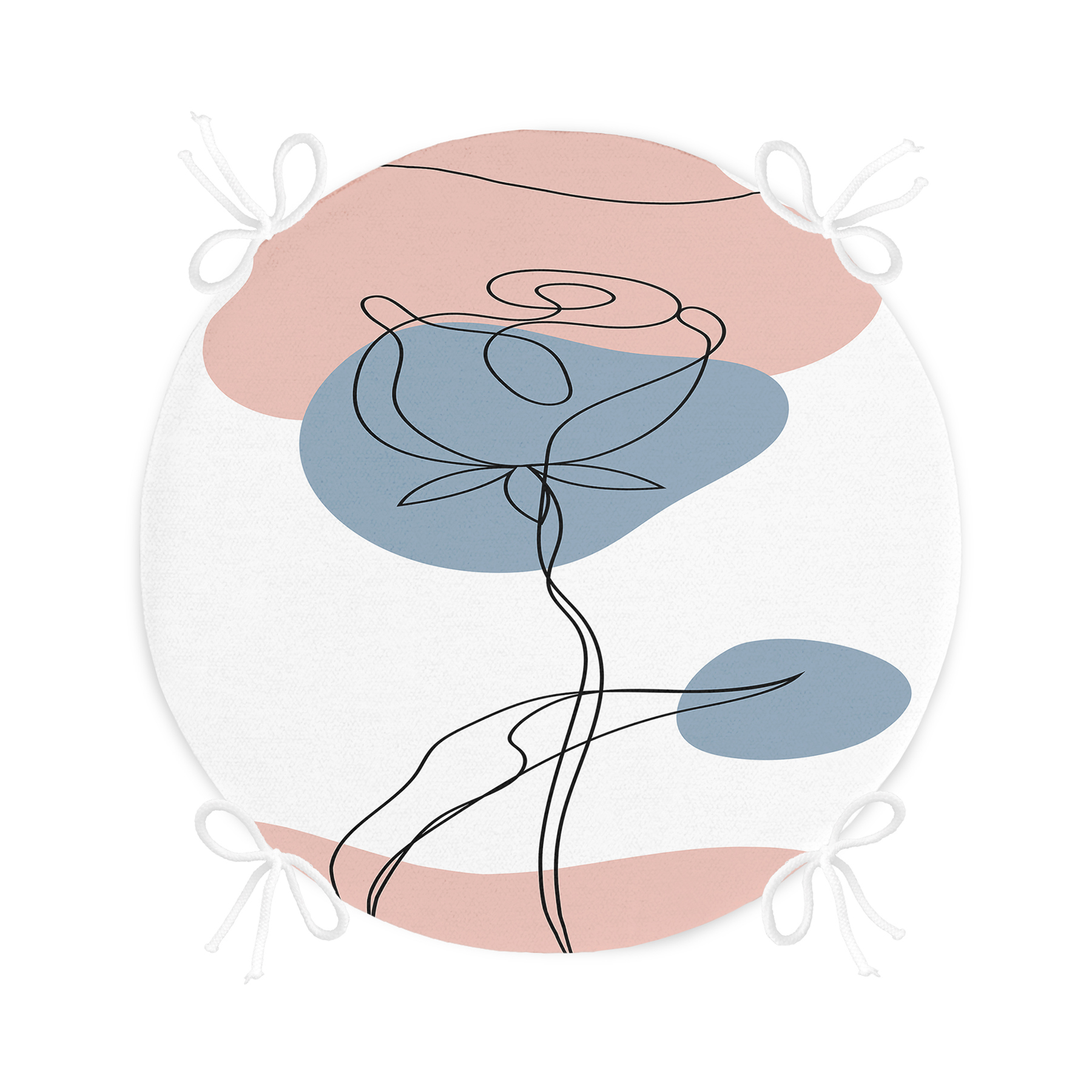 Beyaz Zeminde Onedraw Çizimli Gül Motifli Dijital Baskılı Modern Yuvarlak Fermuarlı Sandalye Minderi Realhomes