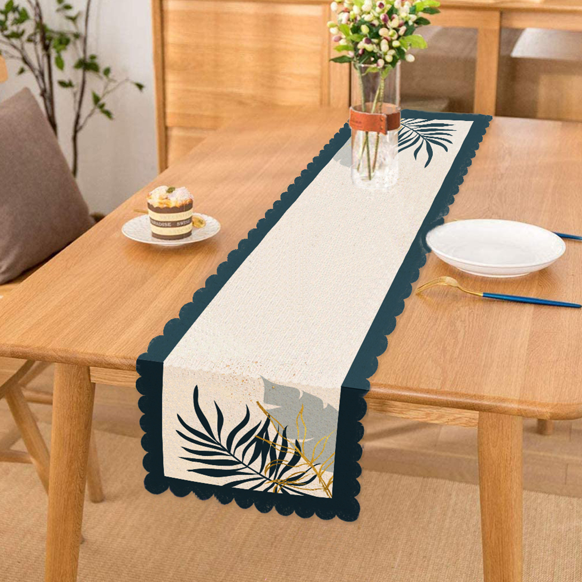 Beyaz Zeminde Onedraw Çizimli Yaprak Desenli Dijital Baskılı Modern Runner Realhomes