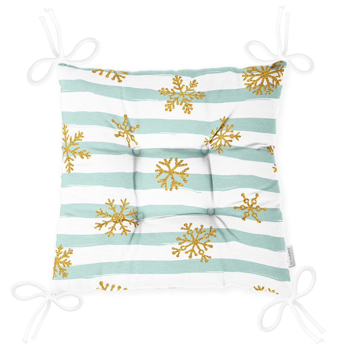 Beyaz Zeminde Renkli Çizgili Gold Detaylı Kar tanesi Desenli Dijital Baskılı Modern Pofuduk Sandalye Minderi