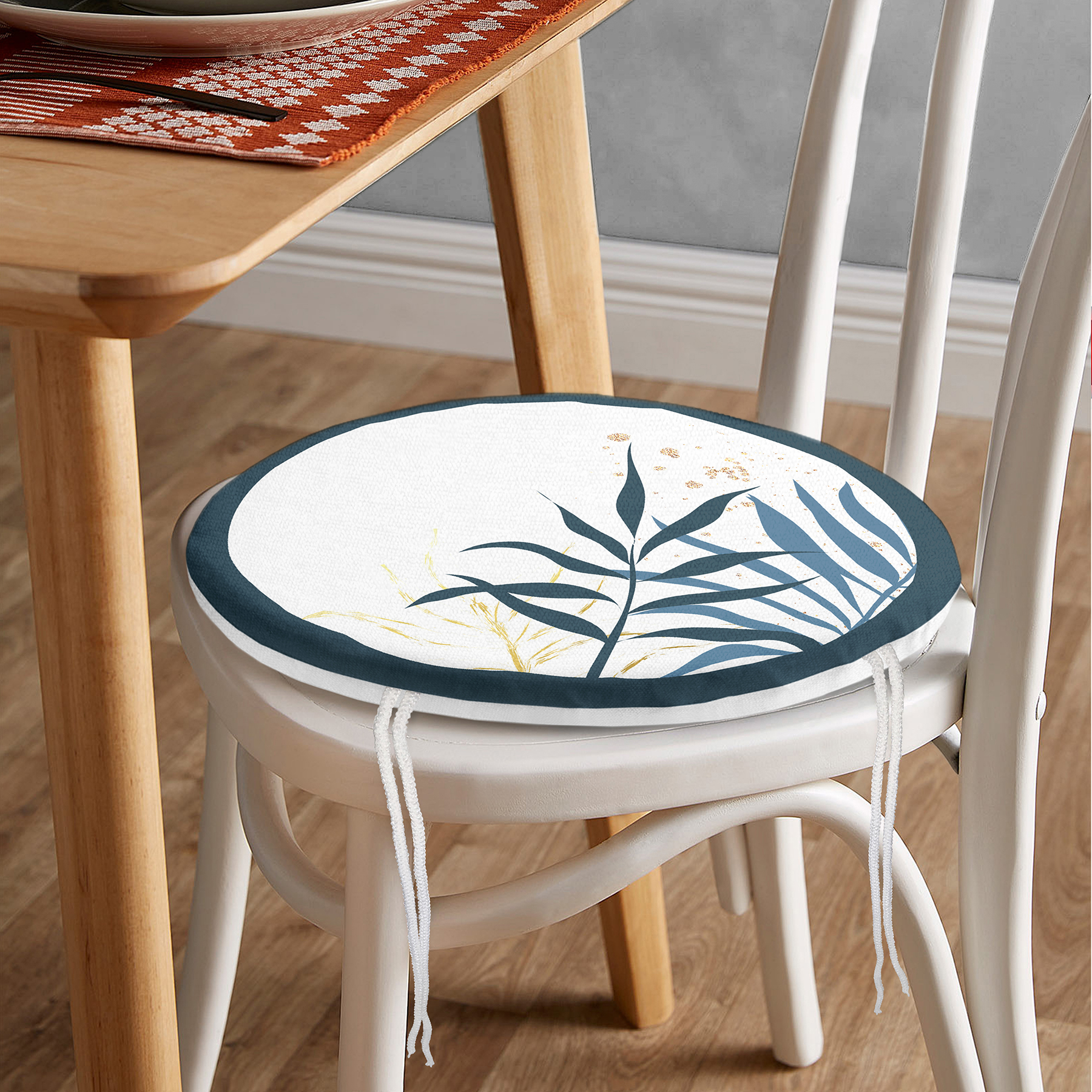 Beyaz Zeminde Renkli Yaprak Desenli Dijital Baskılı Modern Yuvarlak Fermuarlı Sandalye Minderi