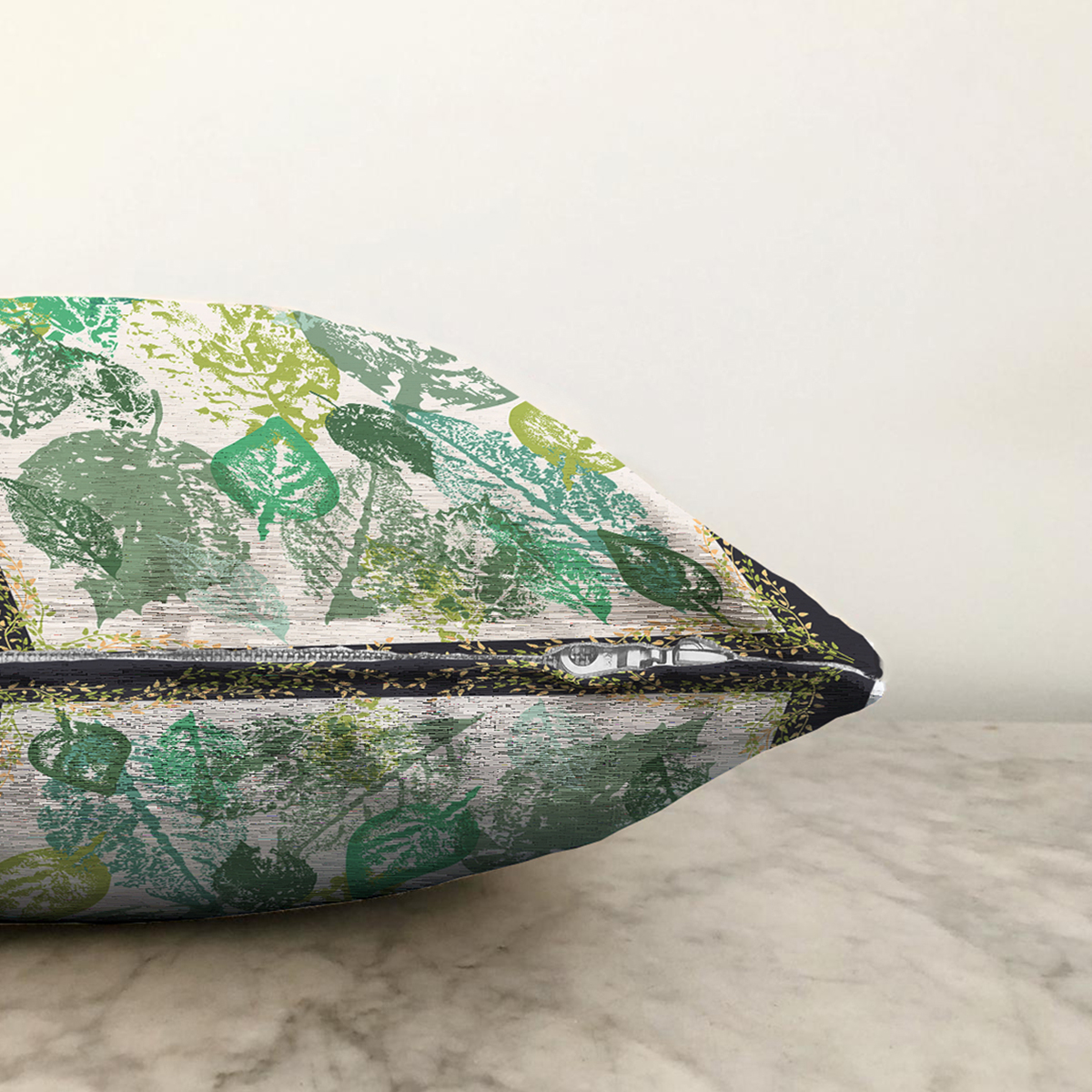 Beyaz Zeminde Renkli Yapraklar Dijital Baskılı Modern Raşel Kadife Yastık Kırlent Kılıfı