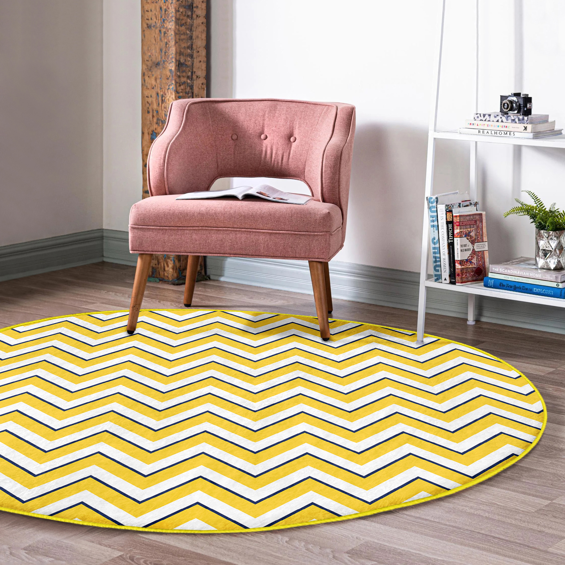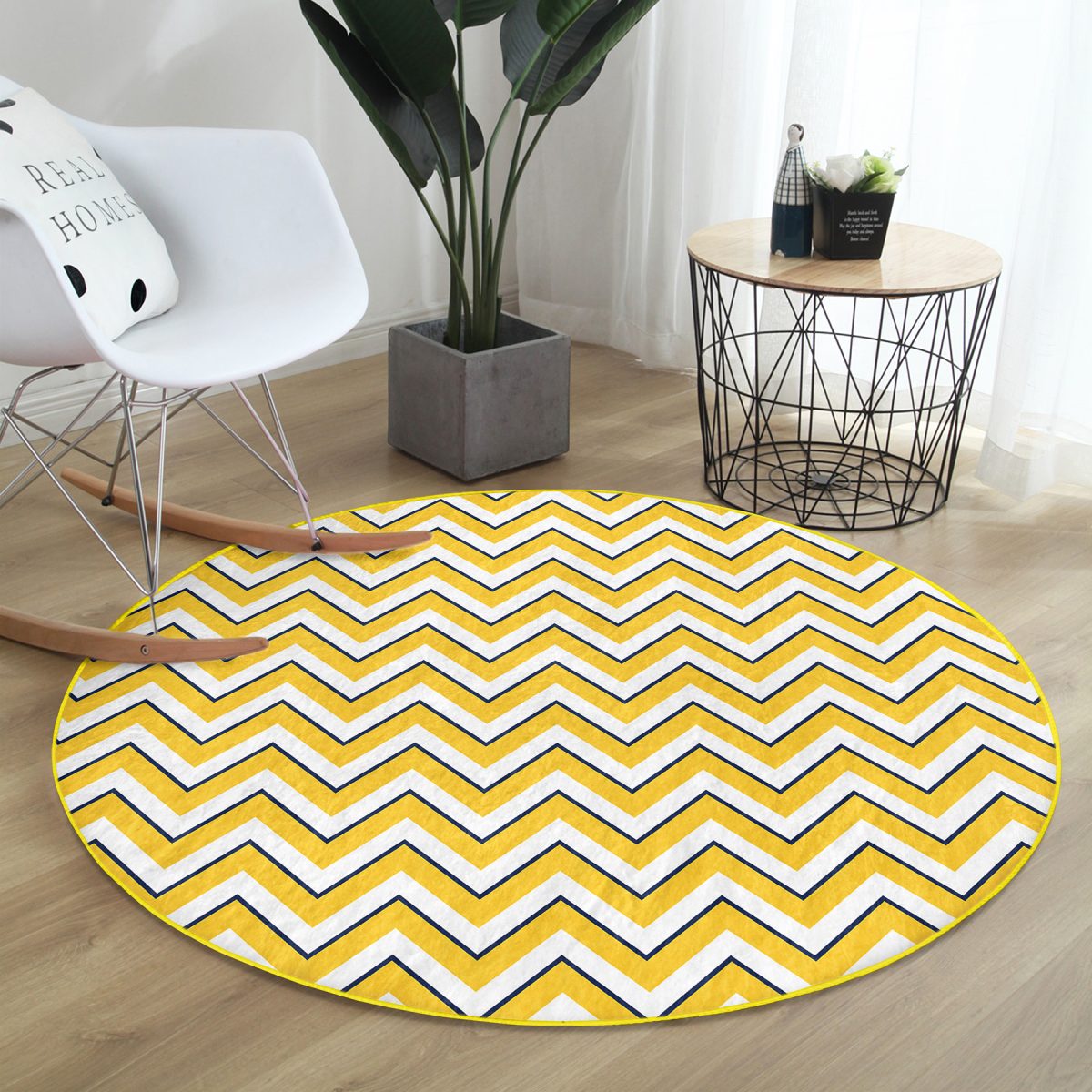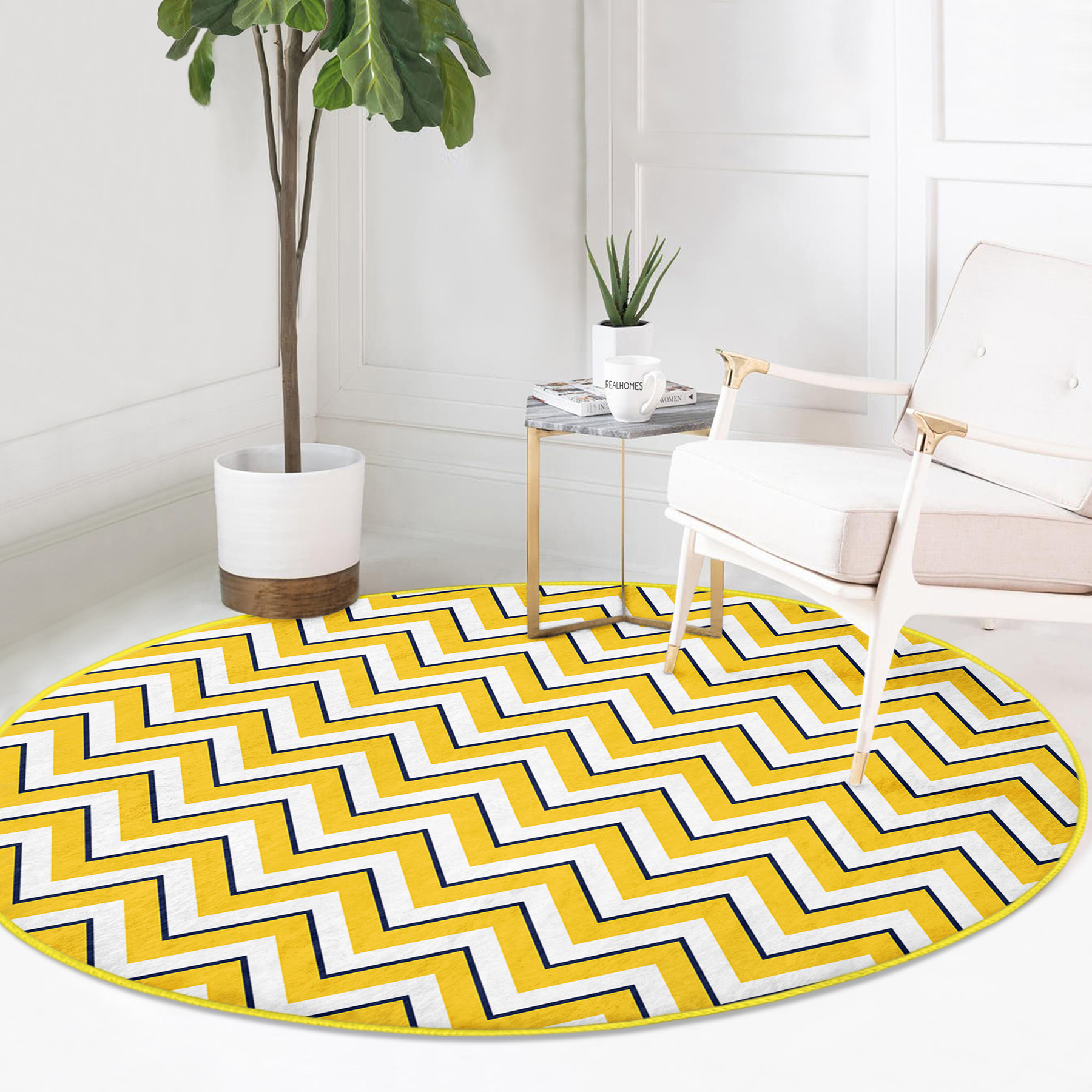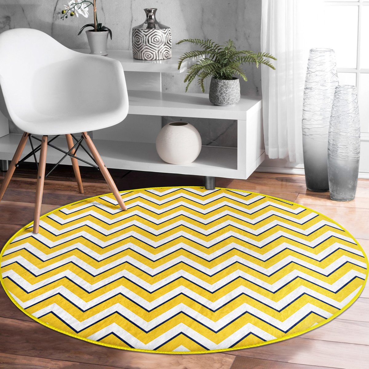 Beyaz Zeminde Sarı Renkli Geometrik Desenli Dijital Baskılı Modern Gold Koridor ve Antre Yıkanabilir Kaymaz Tabanlı Yuvarlak Halı