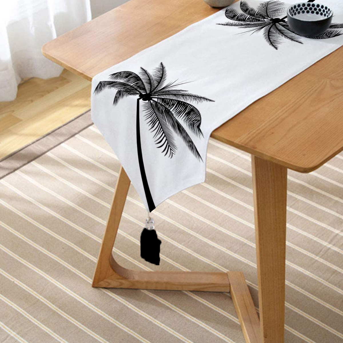 Beyaz Zeminde Siyah Palmiye Desenli Özel Tasarım Püsküllü Şönil Üçgen Runner Realhomes