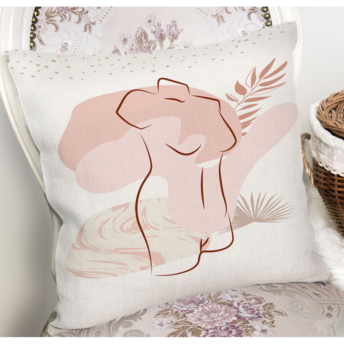 Beyaz Zeminde Soyut Çizimli Dijital Baskılı Modern Yastık Kırlent Kılıfı Realhomes