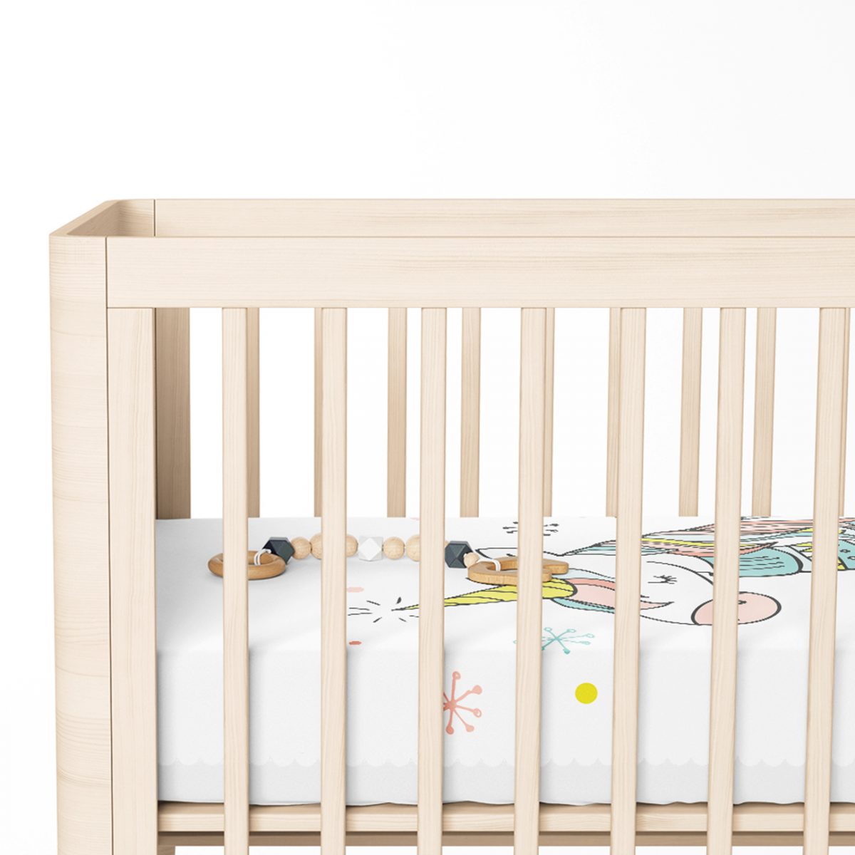 Beyaz Zeminde Unicorn Motifli Bebek Odası Yatak Örtüsü