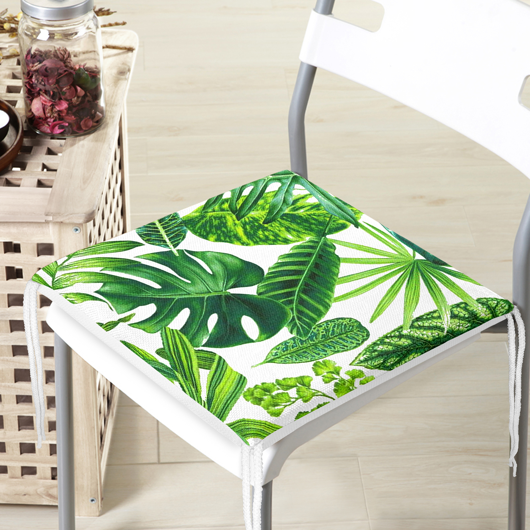 Beyaz Zeminde Watercolor Yapraklar Özel Tasarımlı Fermuarlı Sandalye Minderi Realhomes