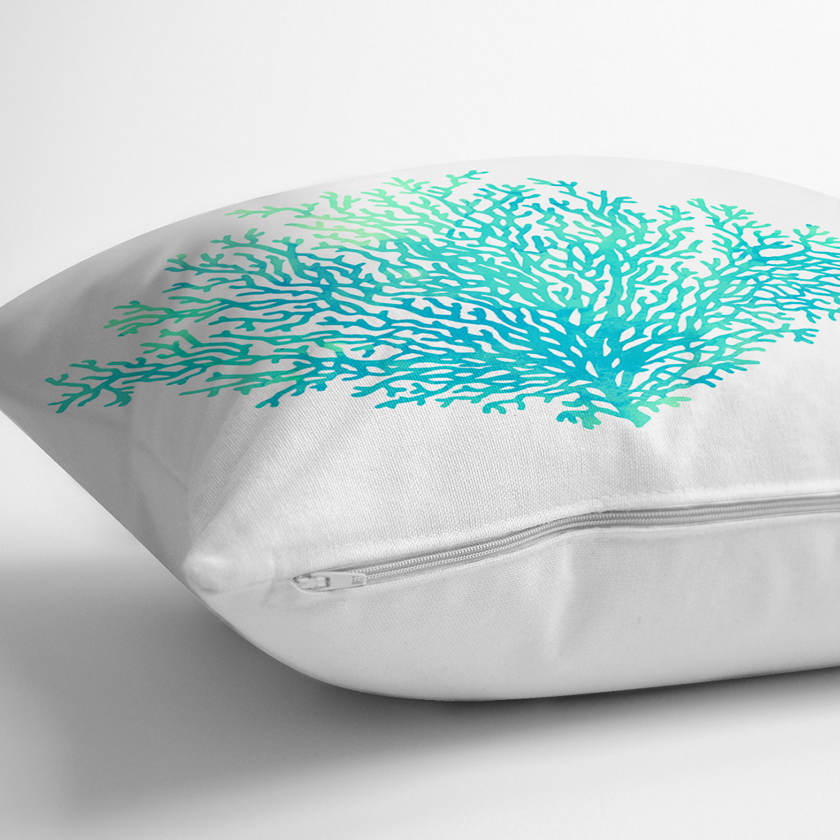 Beyaz Zeminde Yeşil Renkli Su Yosunu Desenli Dijital Baskılı Modern Kırlent Kılıfı