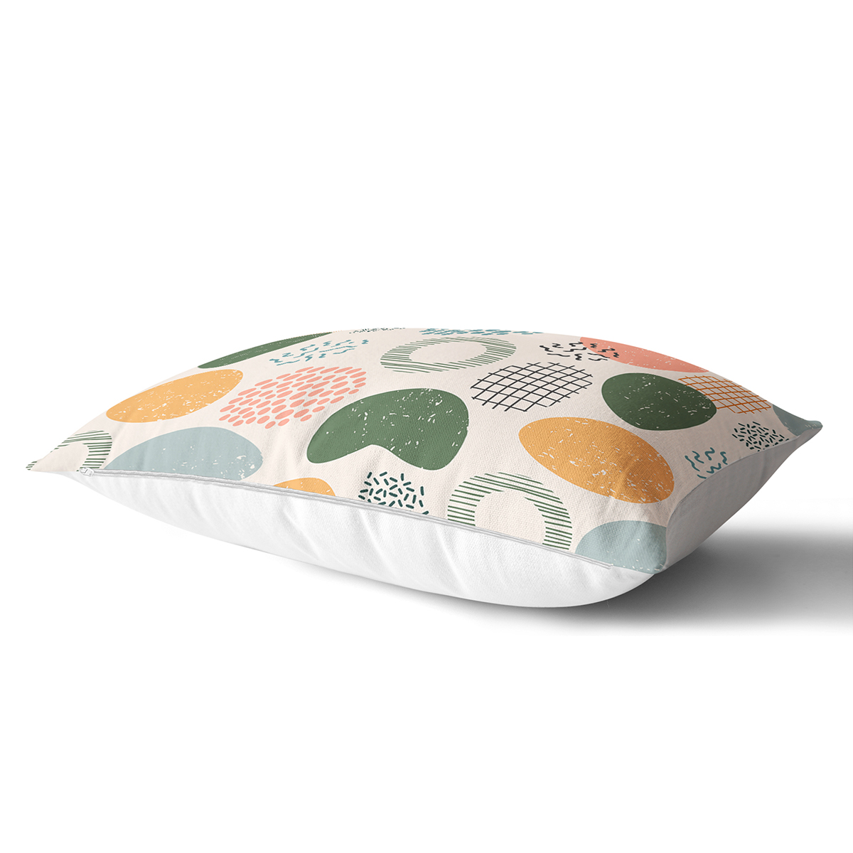 Beyaz Zeminli Geometrik Desenli Dijital Baskılı Modern Dikdörtgen Yastık Kırlent Kılıfı